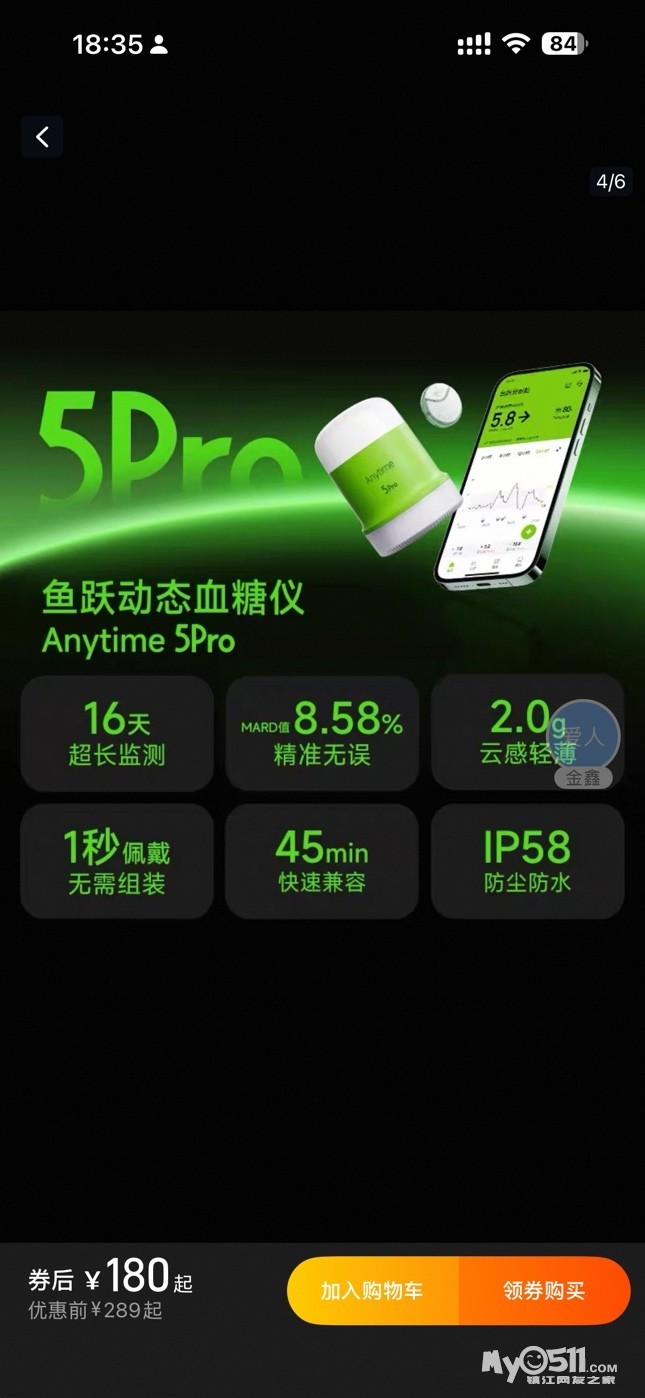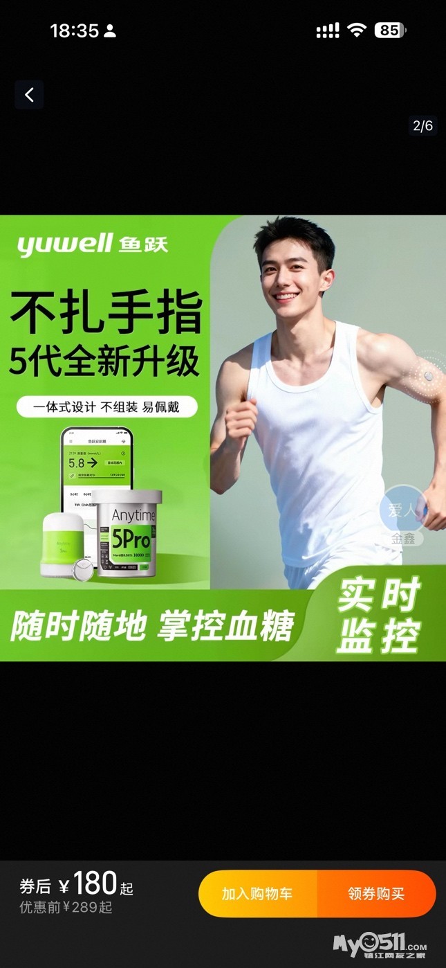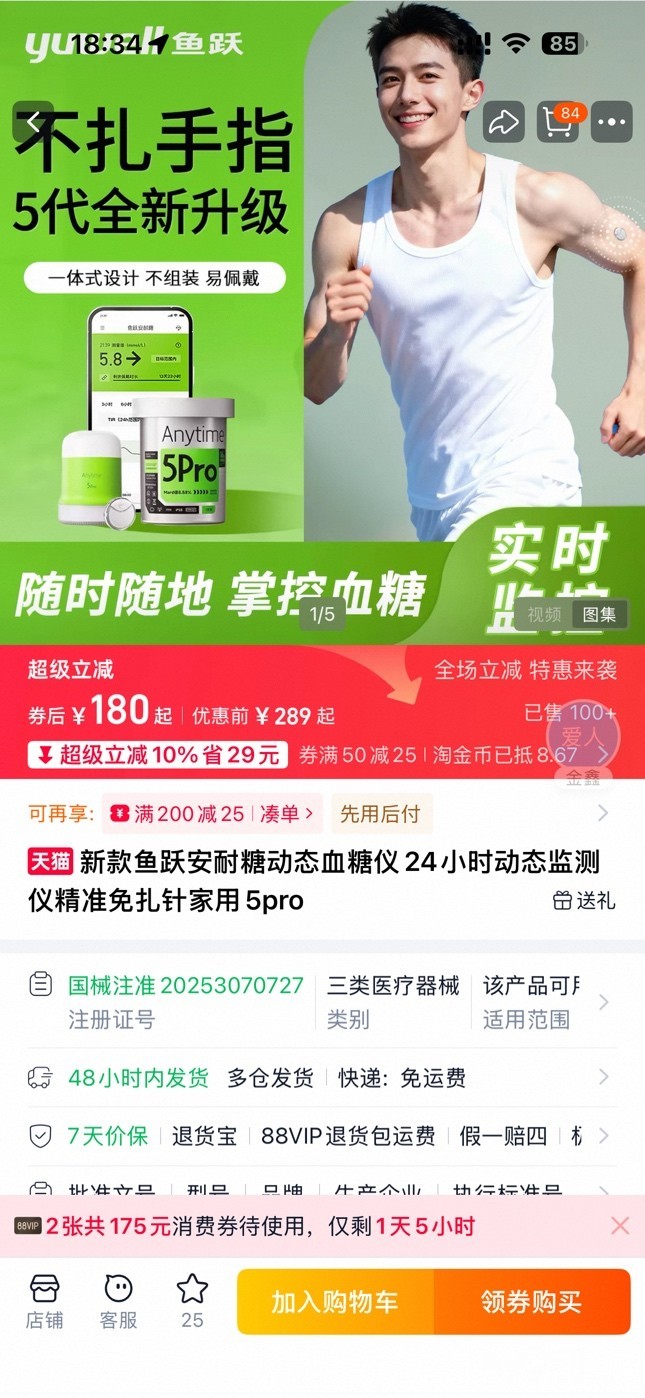 新款鱼跃安耐糖动态血糖仪24小时动态监测仪精准免扎针家用5pro [广告推广]