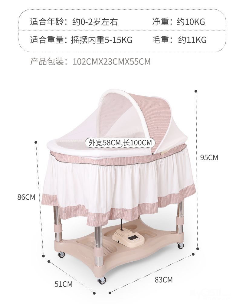 新生儿婴儿电动床,上下摇摆款:400米。 [广告推广]