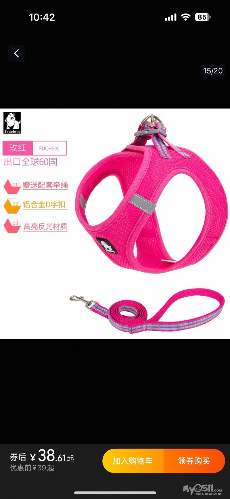 TRUELOVE狗狗牵引绳小型犬狗链子幼犬遛狗绳背心式泰迪宠物胸背带 [广告推广]