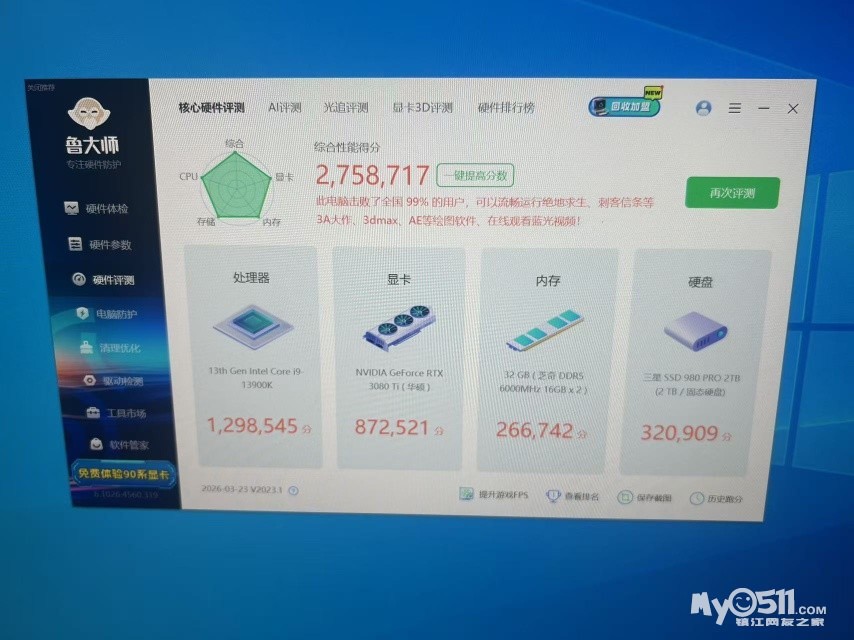 23年左右花费3万配的 鲁大师跑分275万+,性能强劲,办公、游戏、剪辑、设计、3A大作、蓝光视频都能流畅运行