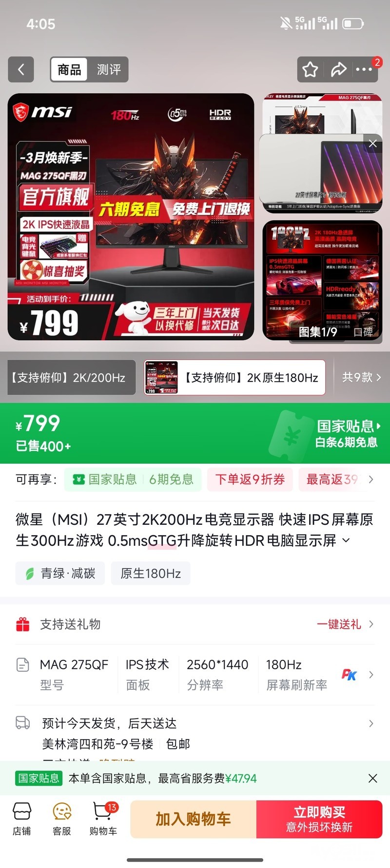 27寸180hz,2k分辨率,包装盒都在,成色99新,用了一年不到。感觉有点小,想换,打游戏绝对。电话18020485050,价格499。