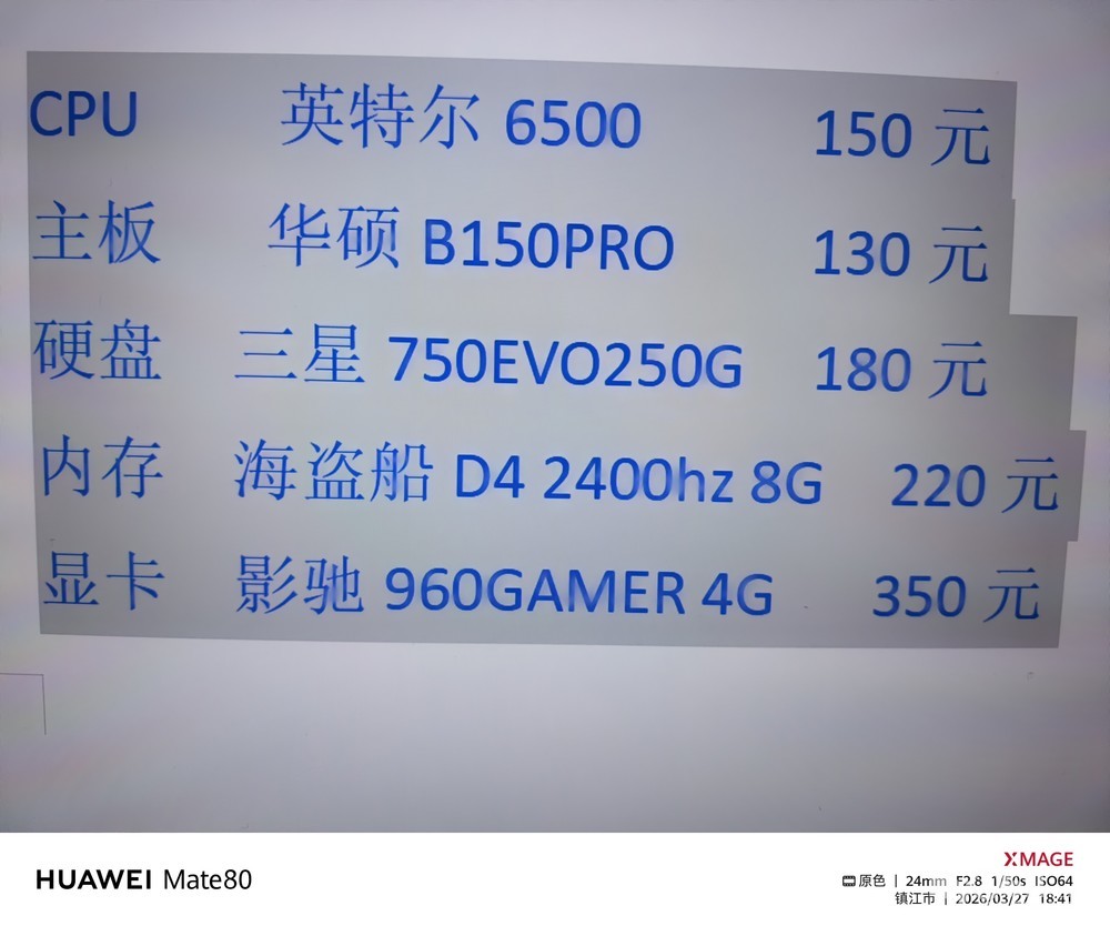 配置如图,价格999块,可以拆机单卖。