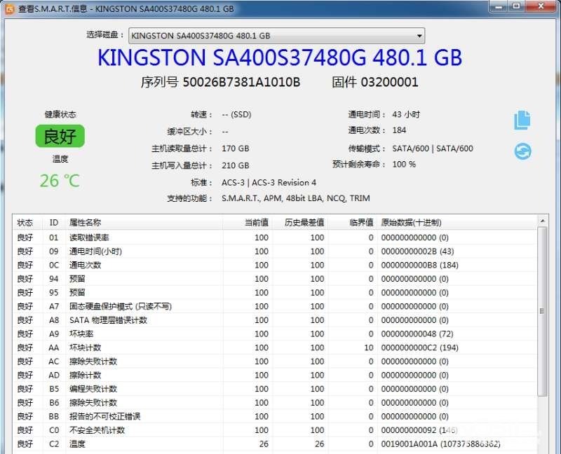 » 转金士顿A400 480G固态硬盘