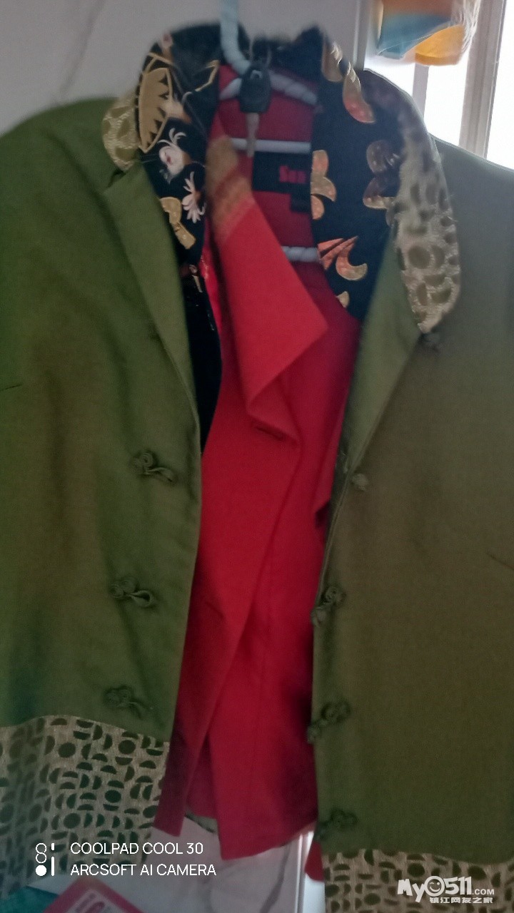 还有千元购买几乎全新,都仅拍照一次,花样年华精美黑色旗袍 ,紫红色旗袍,金色长袖旗袍,现50一件,香港买千元品牌米色精美风衣50元,紫红风衣,条纹西装长外套,红色段面,每件20元,有缘喜欢且身材高挑瘦160或瘦165,可以穿。