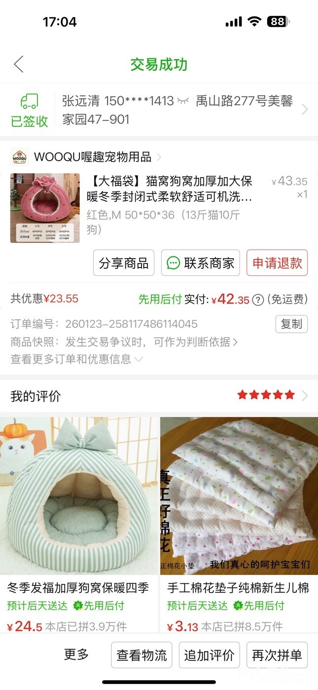 几乎全新狗窝20元上门自取