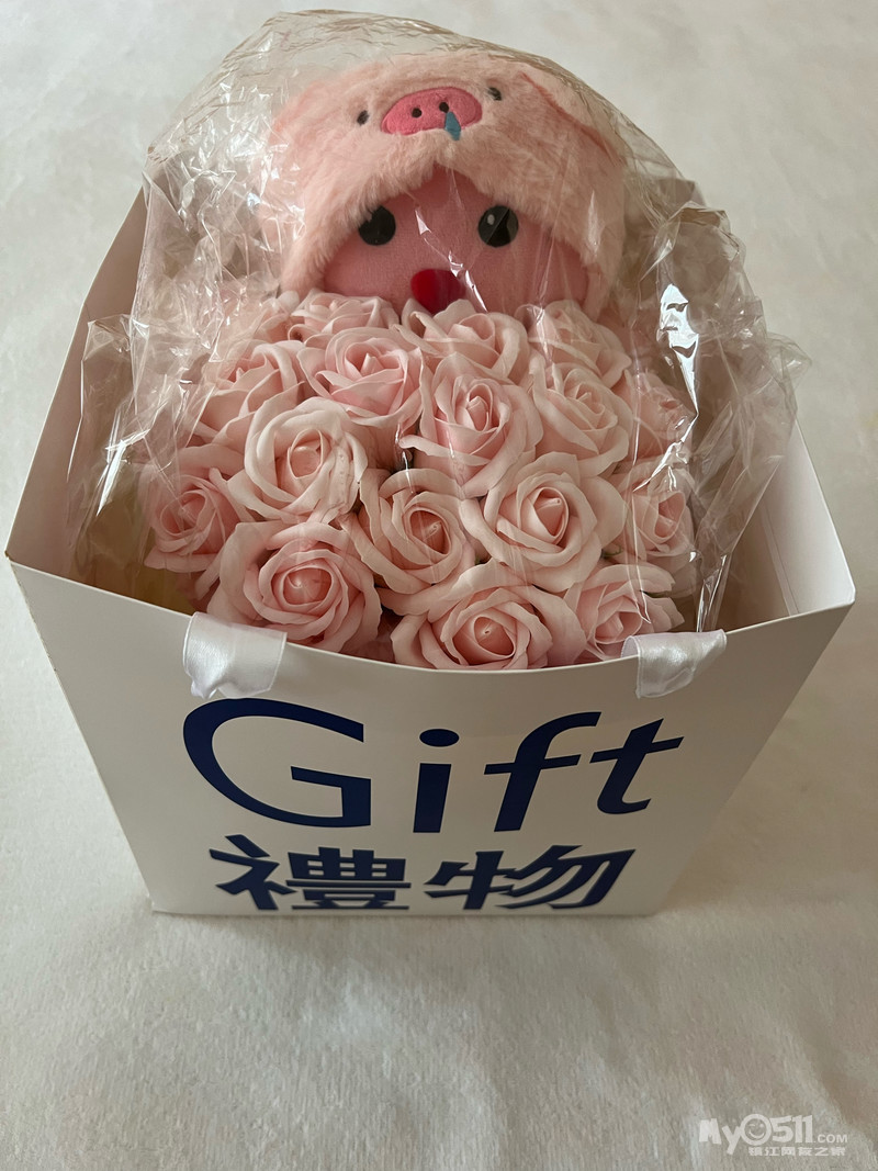 全新21枝玫瑰永生花抱抱桶,配可爱露比(带帽子、蝴蝶结)公仔,包装完整未拆封。微信:18952946161。