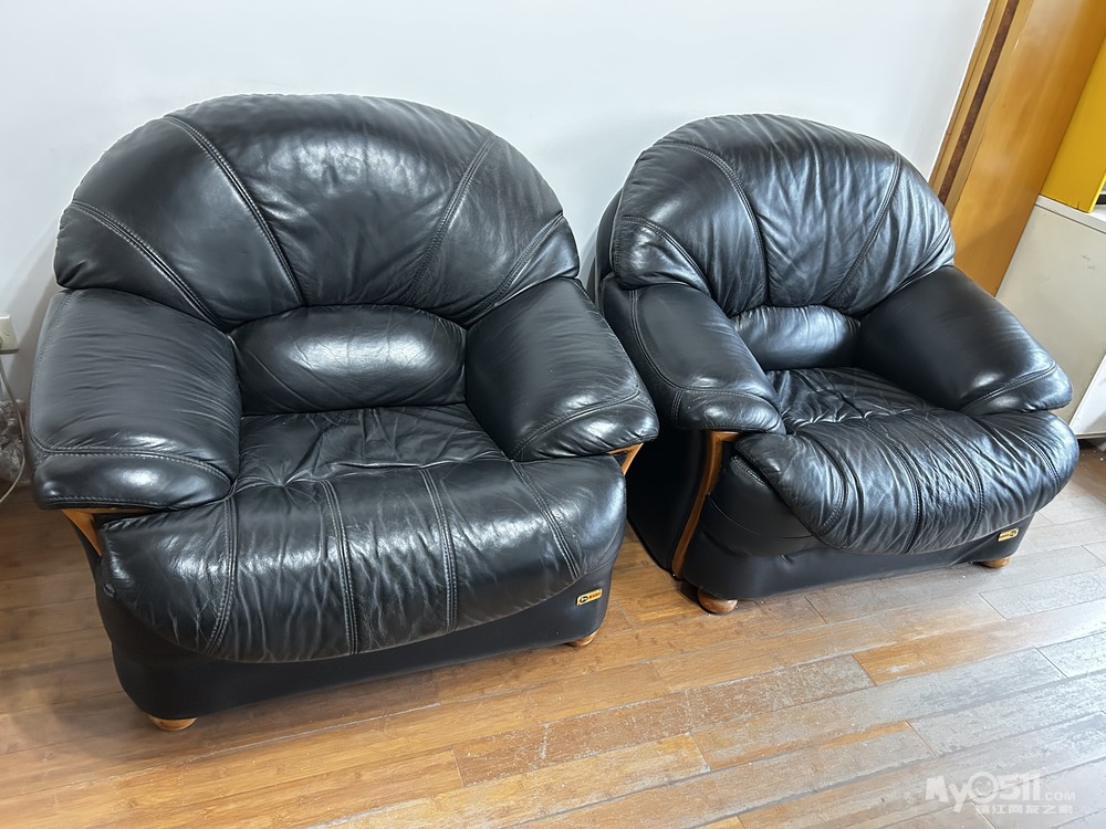 真皮单人沙发一对