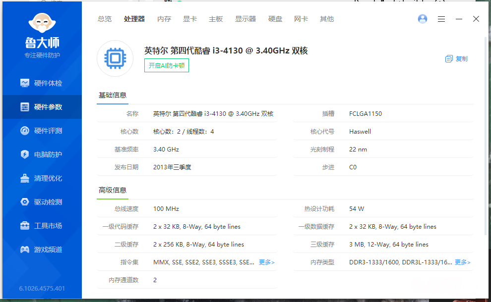 I3 4130板U套装 微星b85m-e45主板 130元