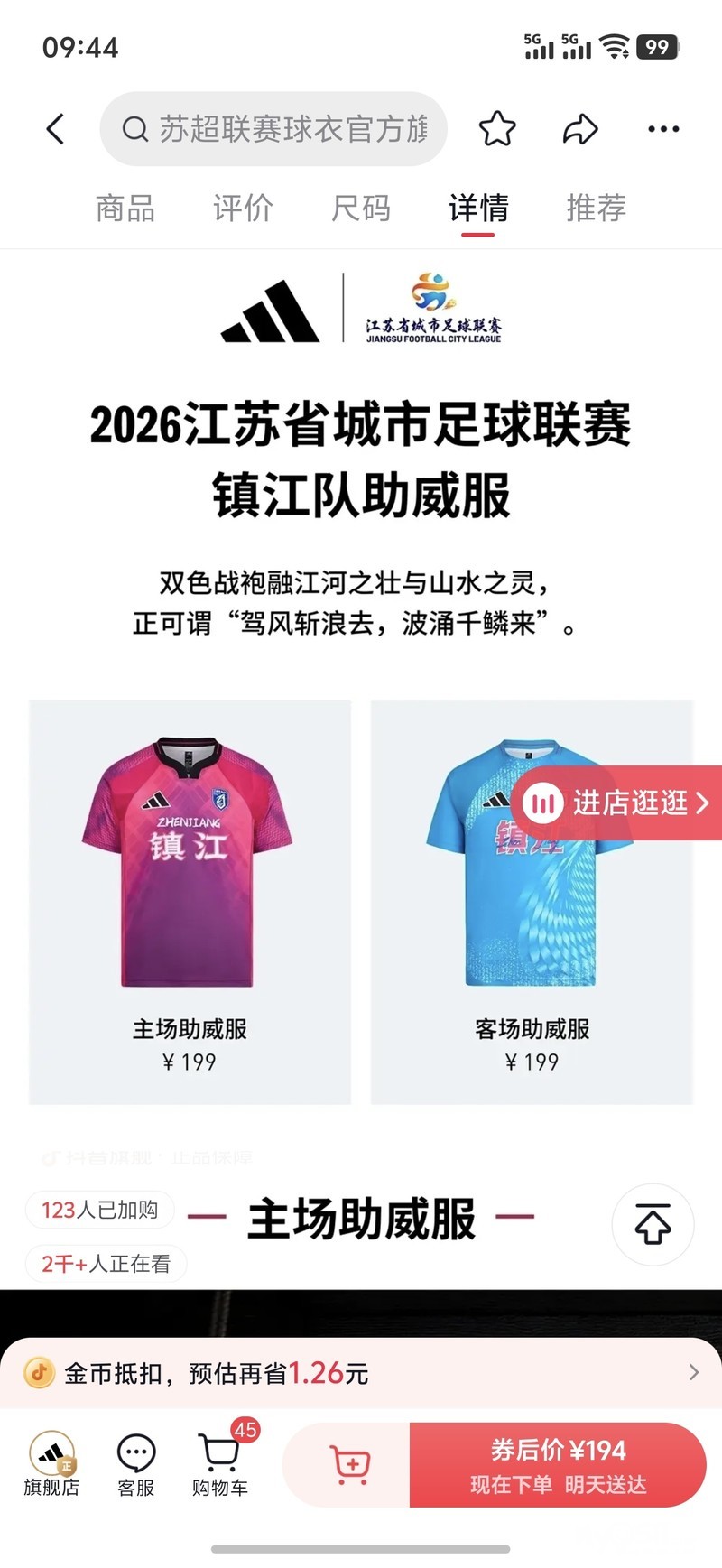 转一件正品阿迪达斯镇江队球衣。主客场都有需要什么码有货的都可以