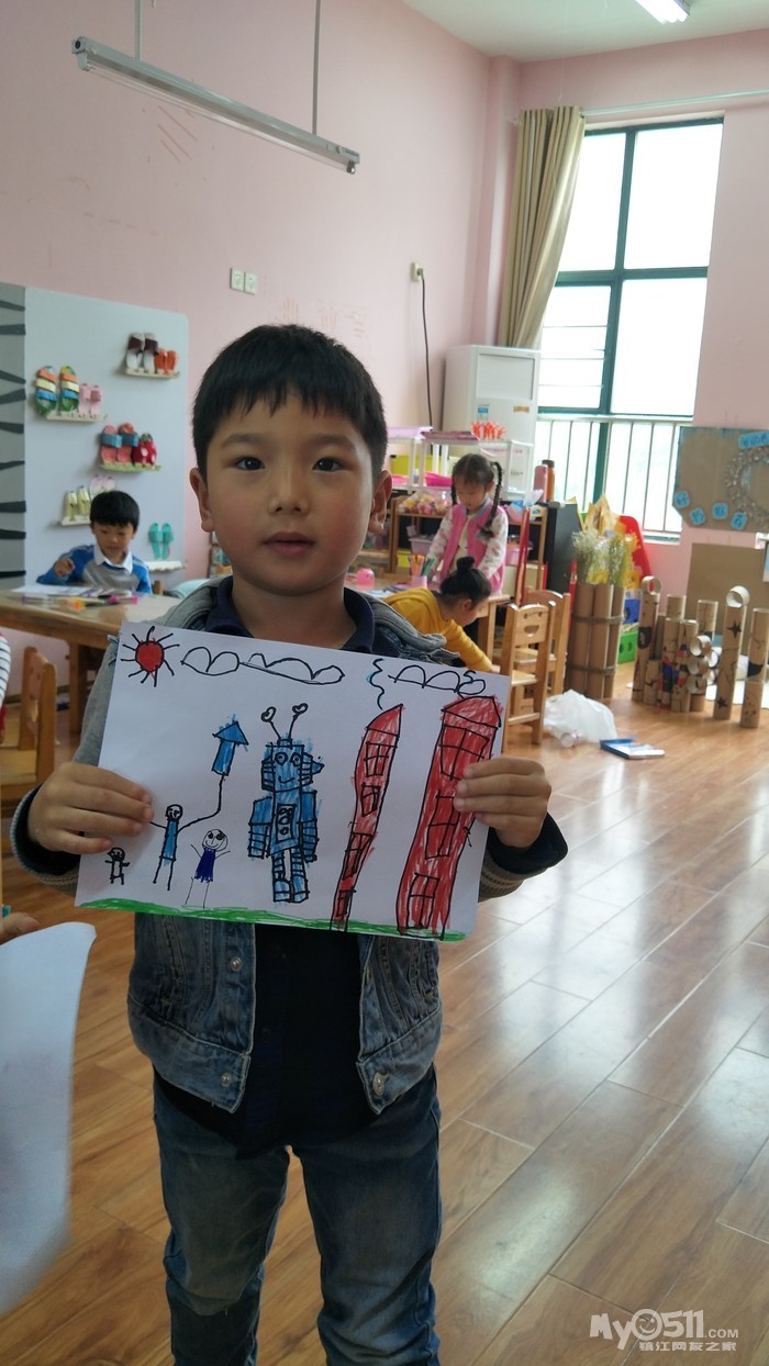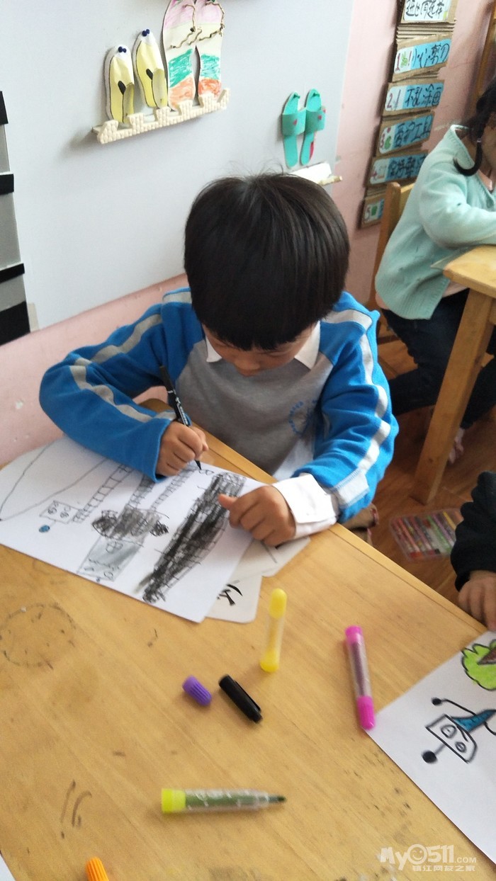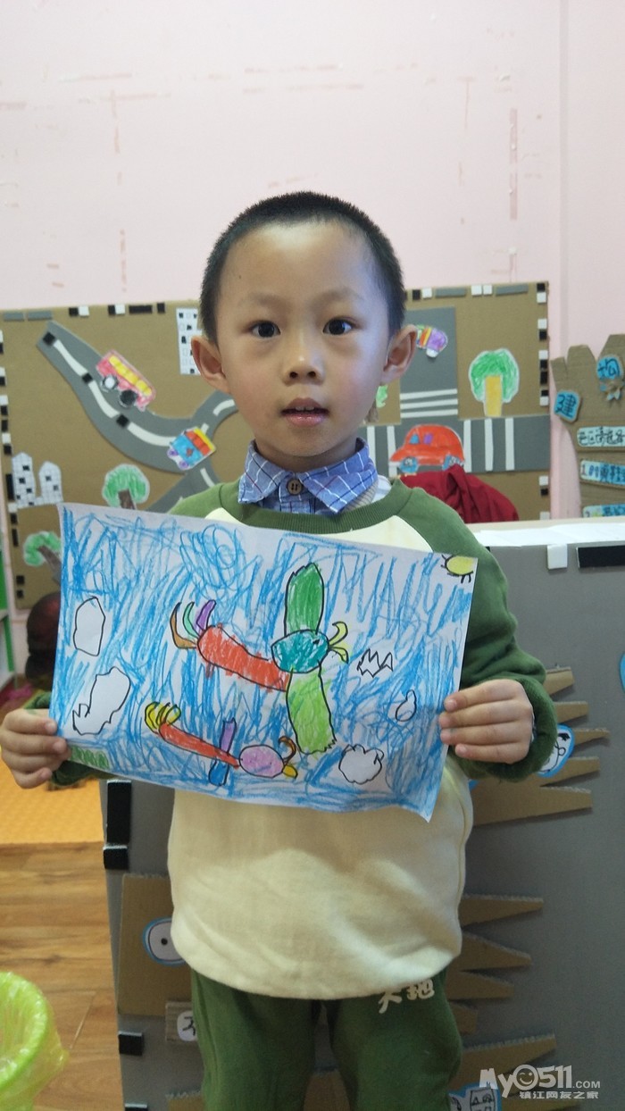 在大森林里,有一辆蓝汽车,他的车灯是两只管子。扑哧,扑哧,管子能喷出蓝颜色。蓝汽车认为蓝颜色是最好看的颜色,于是他就到处乱喷。