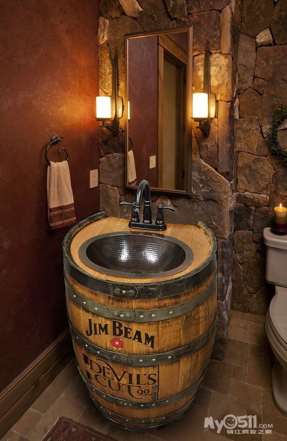爱喝酒的男士们,把水槽做成酒桶的样子,每天洗手的时候,是不是觉得趣味性强了很多。