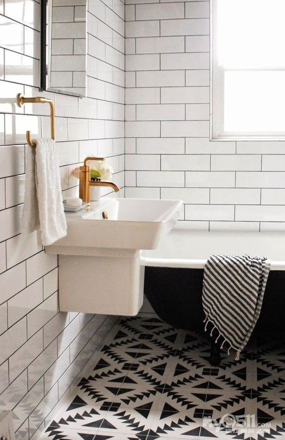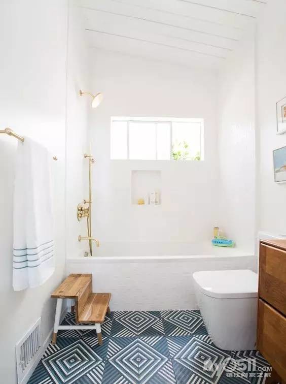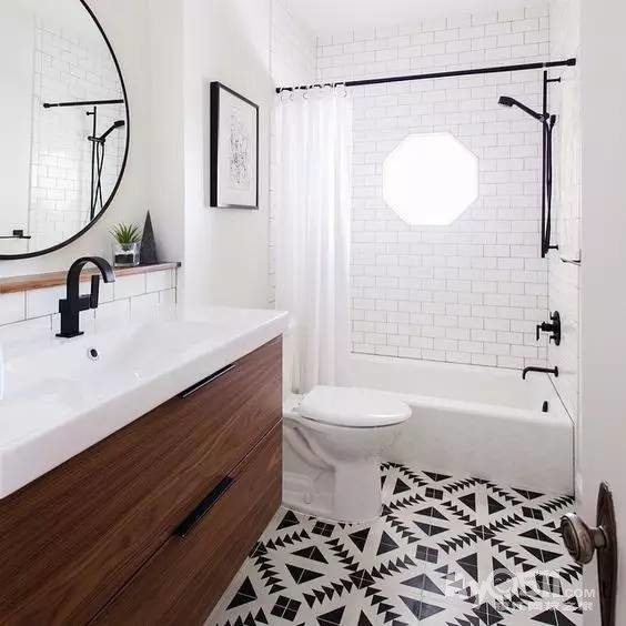 像这种用花纹拼接的地砖和白色的墙面搭配起来就很适合。