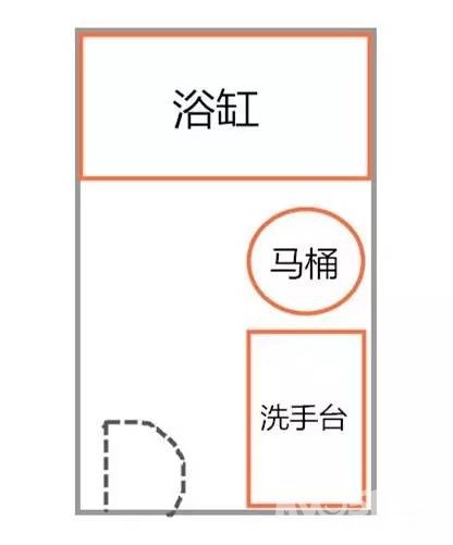 但你发现了吗?在一般情况下,带有浴缸的浴室分布情况最多是下面这一种。