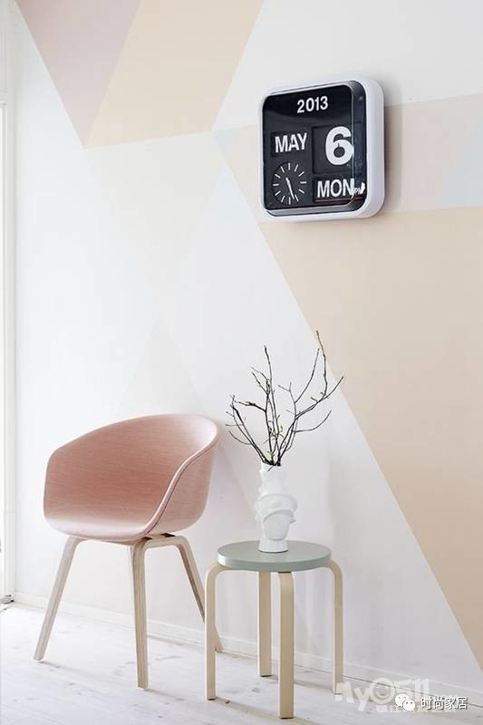 ▲暖色调色块拼接的墙体更显温馨,加同色系的家具点缀,展现满满少女心。