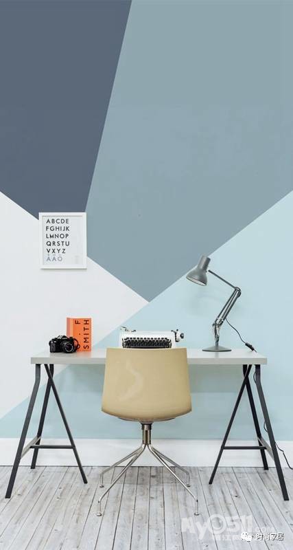 ▲冷静沉稳的灰蓝更适合作为单身男士工作区的用色,不规则的形状又可以让思维跳跃起来来场头脑风暴。