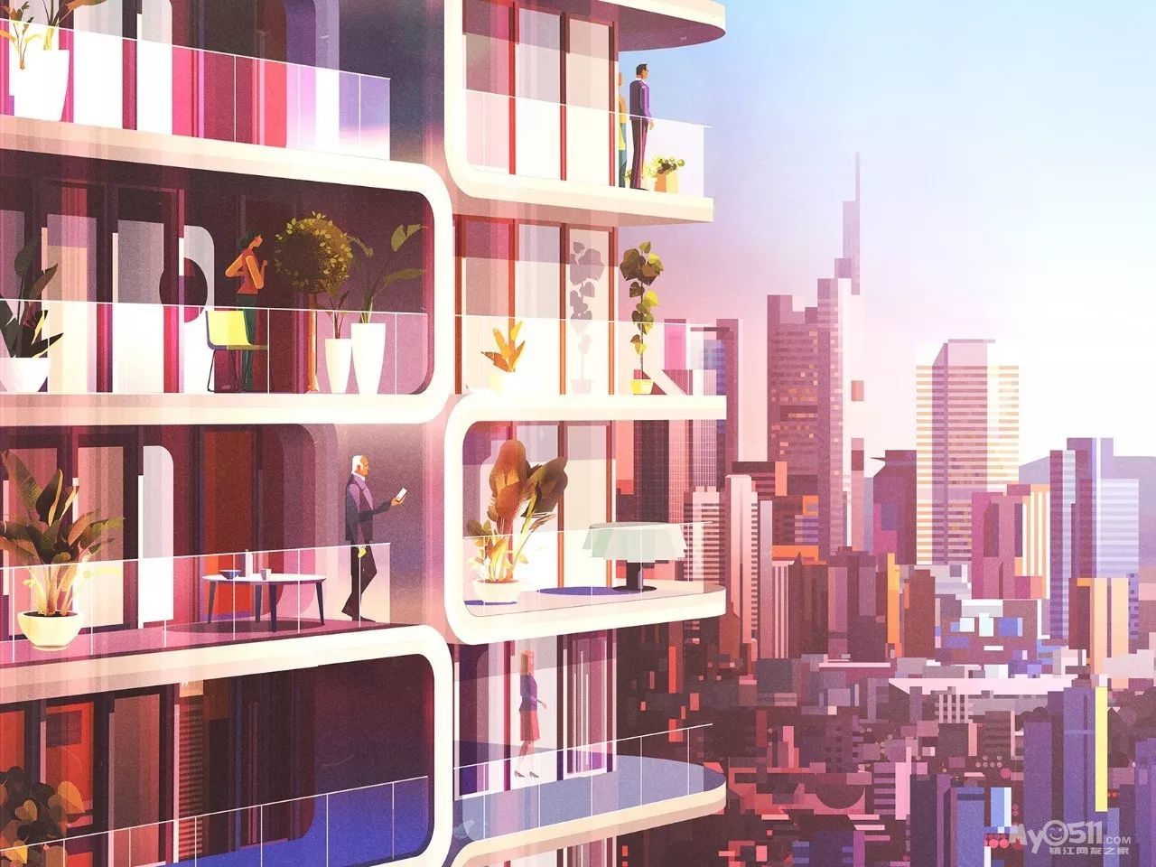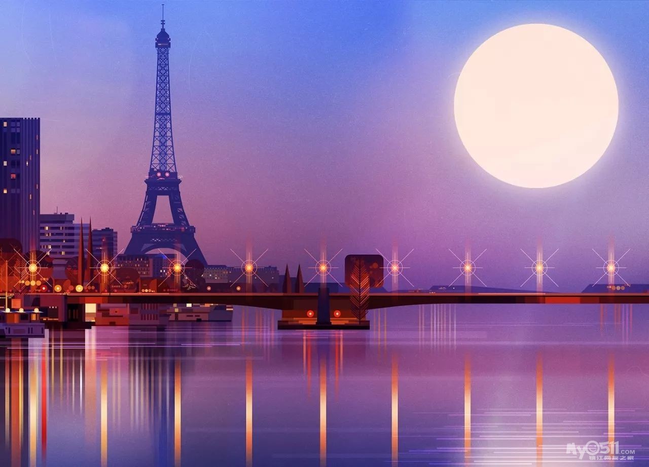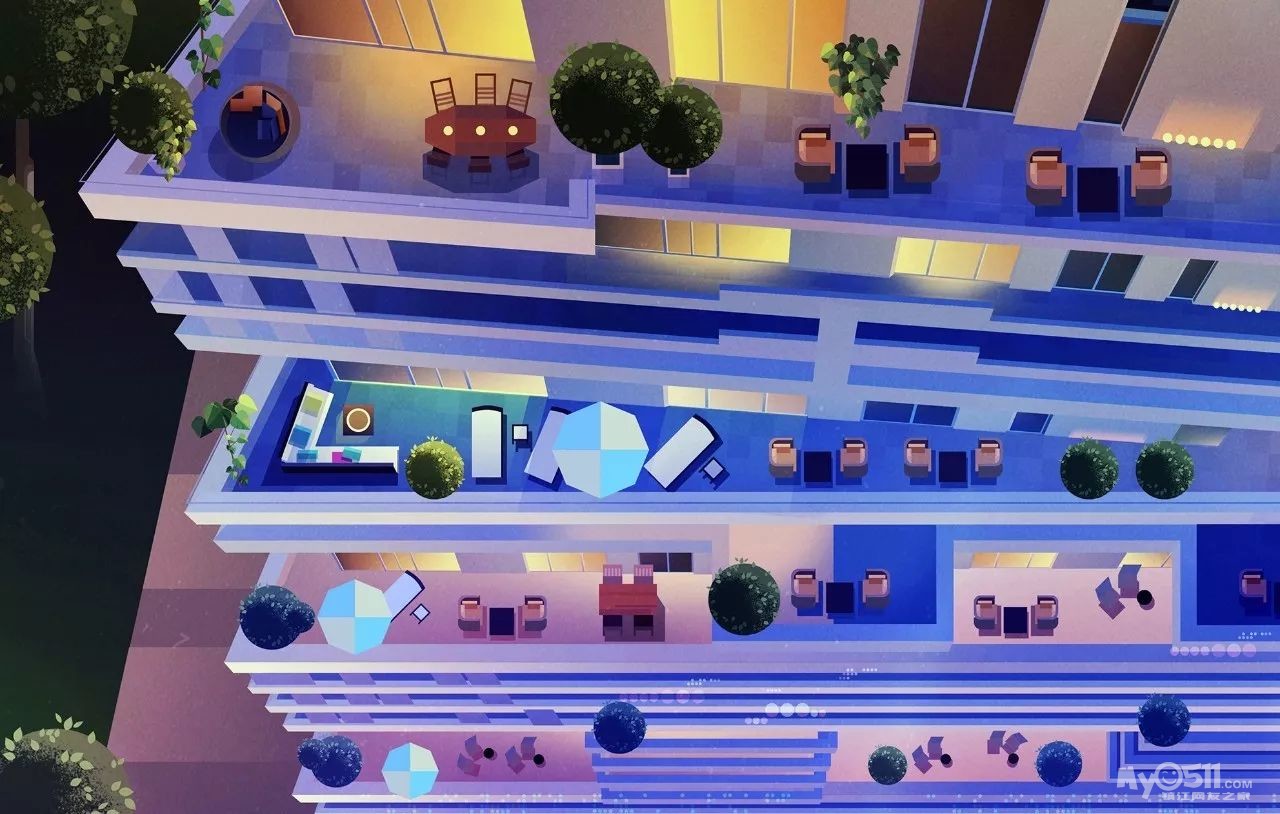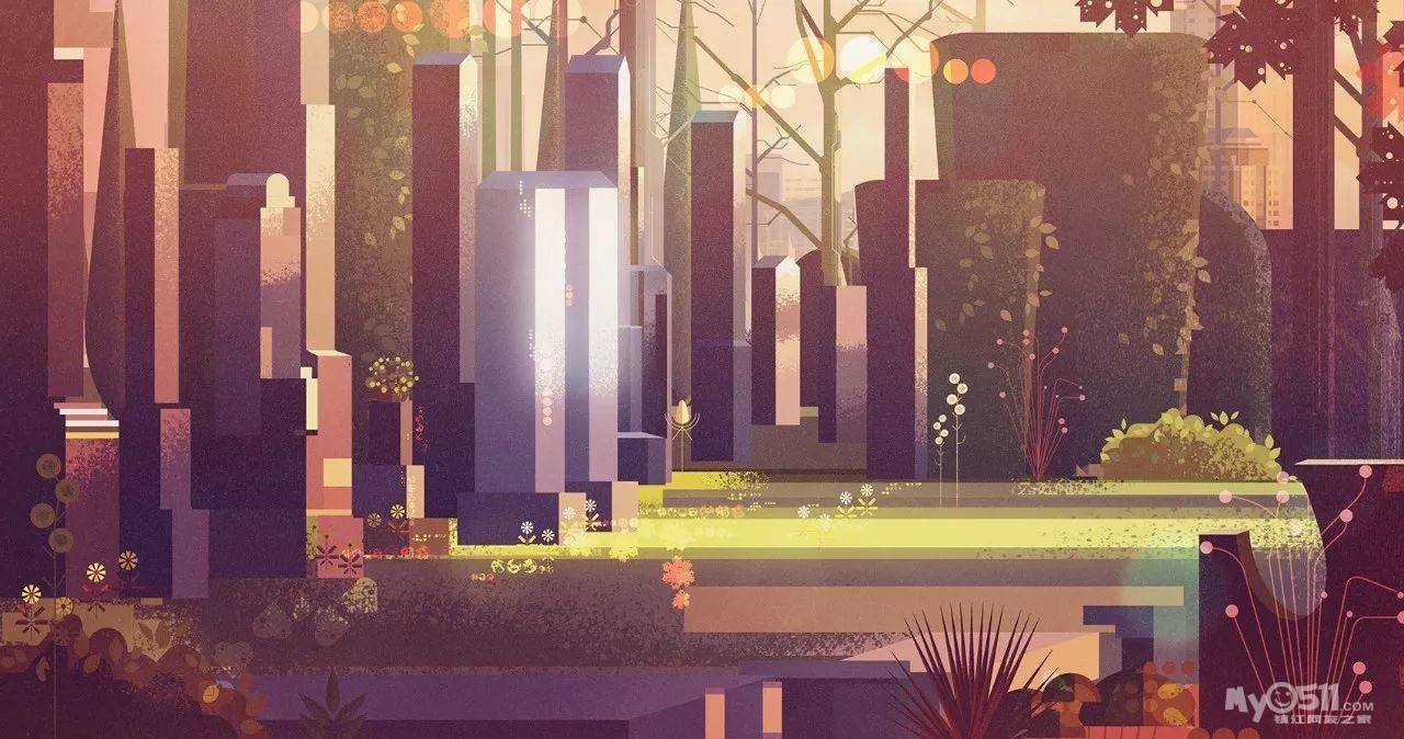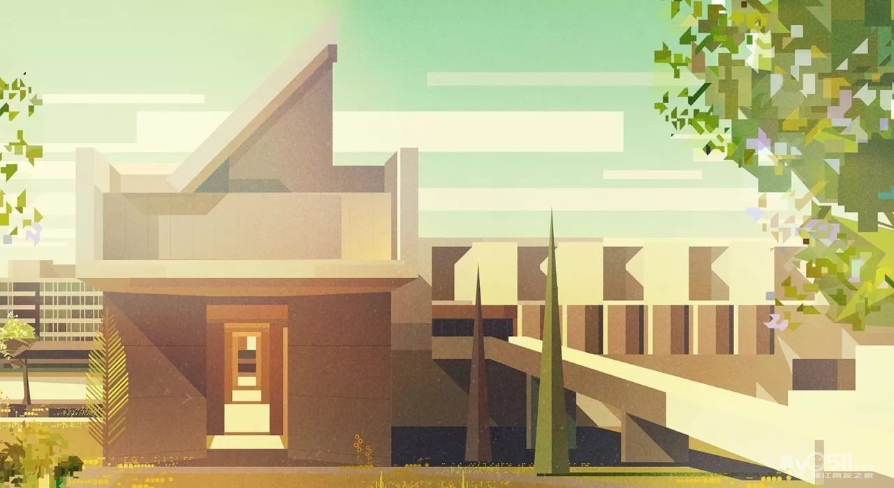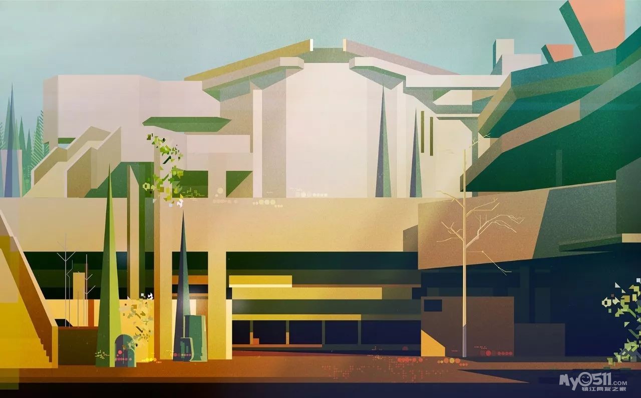 James Gilleard通过历史与现代的各种主题结合来实现艺术创作,细看之后才能发现特别之处——他的插画采用大小样式不一的几何图形拼凑而成,赋予了画面很强的节奏感与形式感。