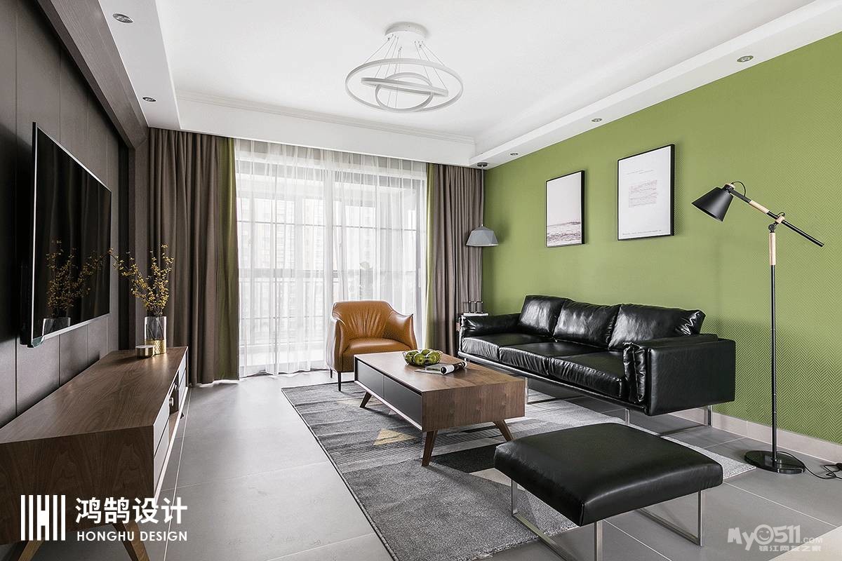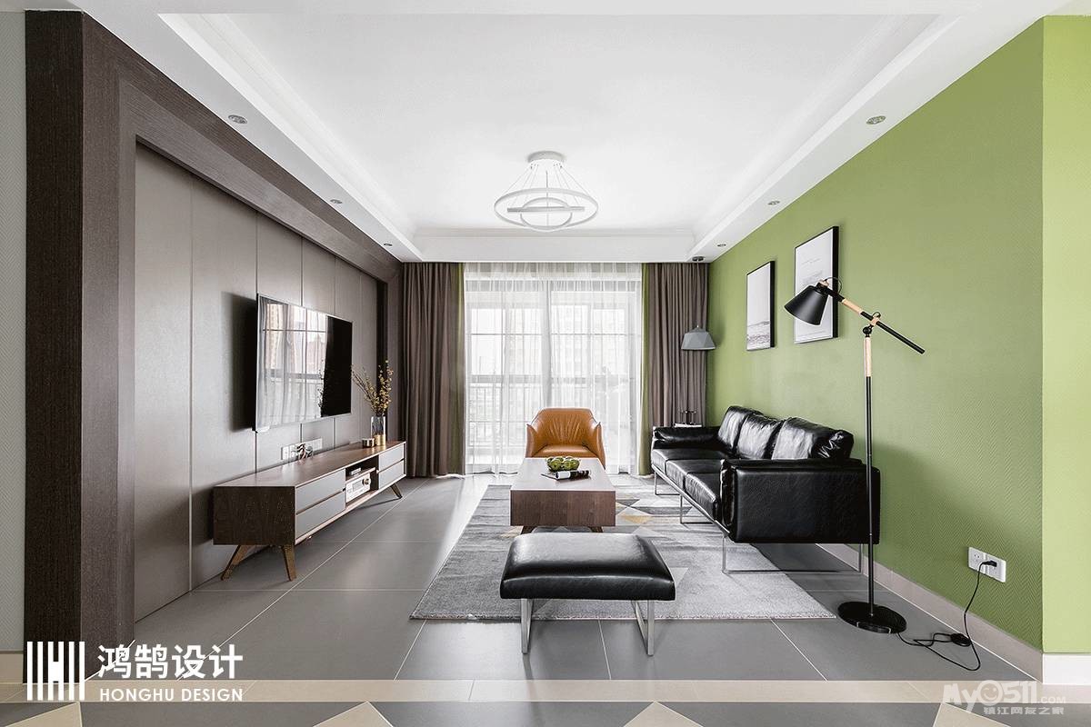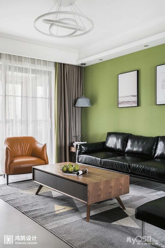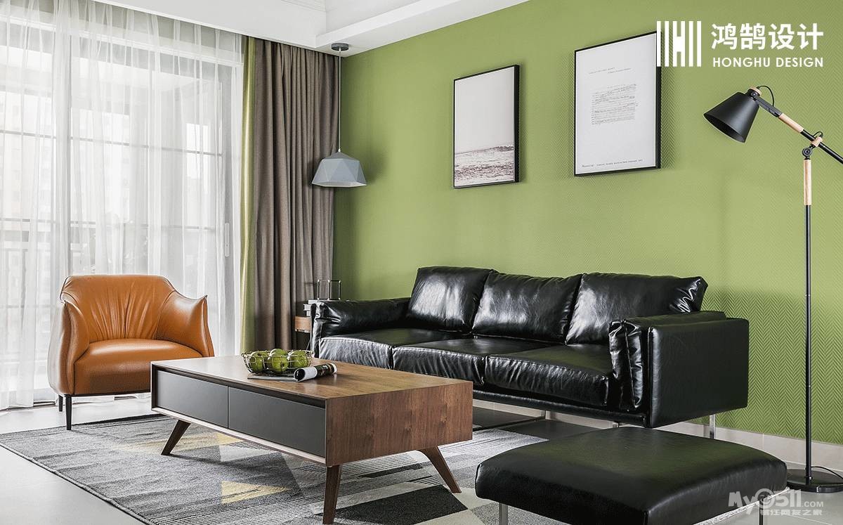 客厅设计主打简约时尚,打造较为舒适的视觉效果。草木绿的沙发背景搭配大气简约的皮质沙发,充满了青春活力的气息。