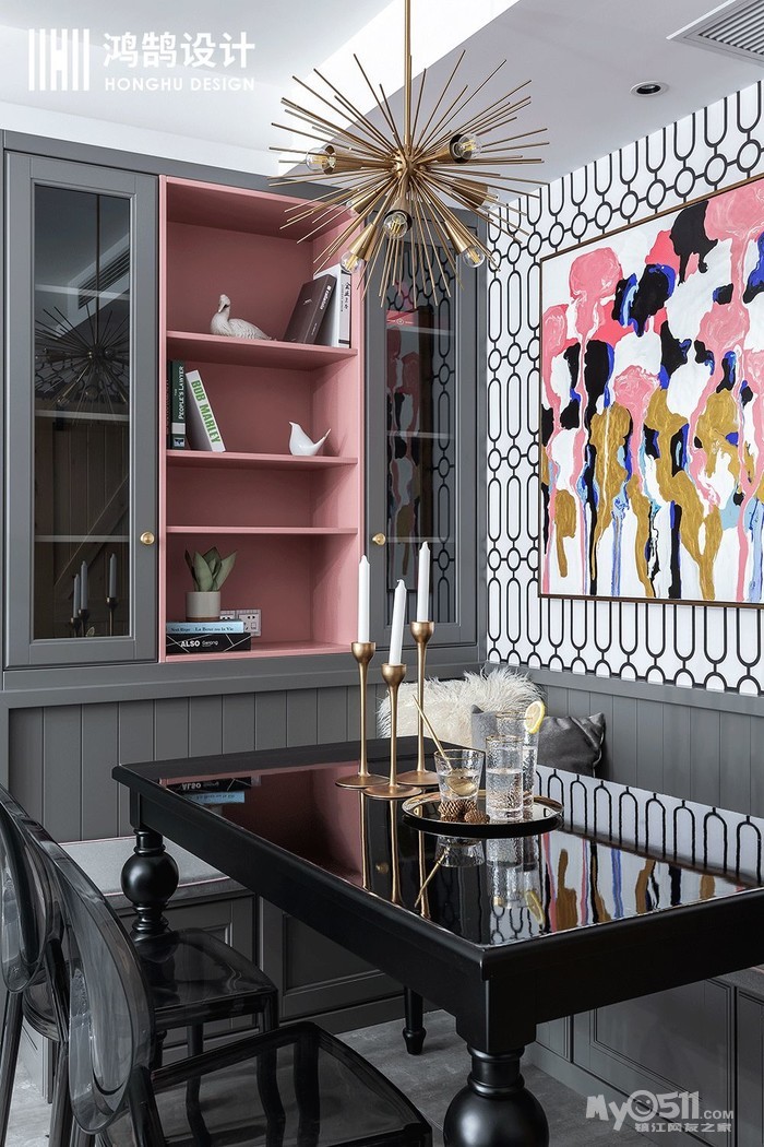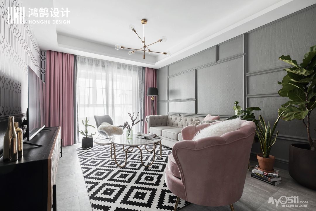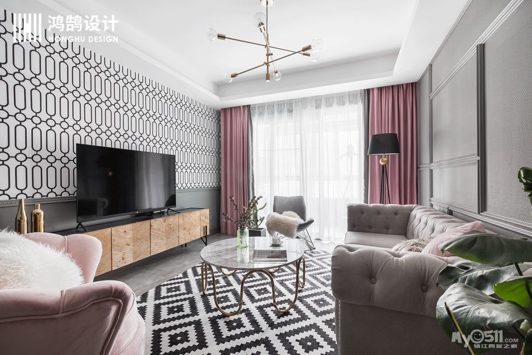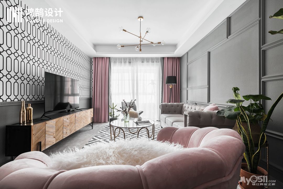颇具现代时尚气息的搭配,在小编眼里,简直就是网红家的典范,黑白不规则形状上墙,看似非常出格的设计,却用高级灰和橡皮粉搭配使得空间充满柔和的质感。