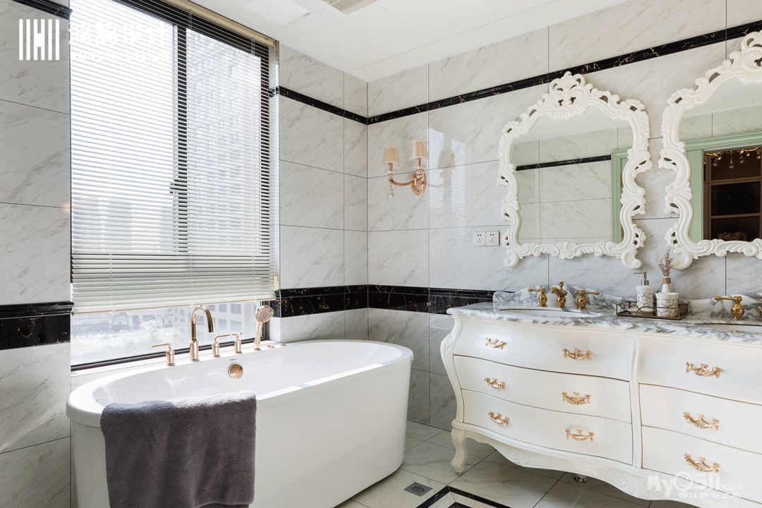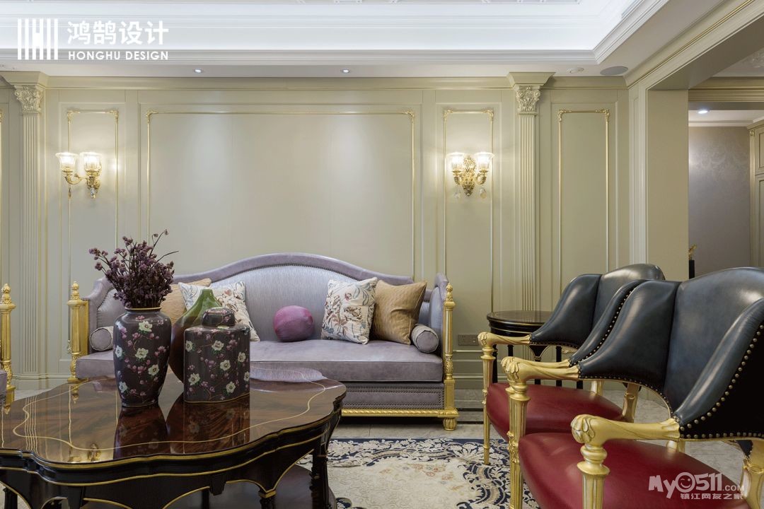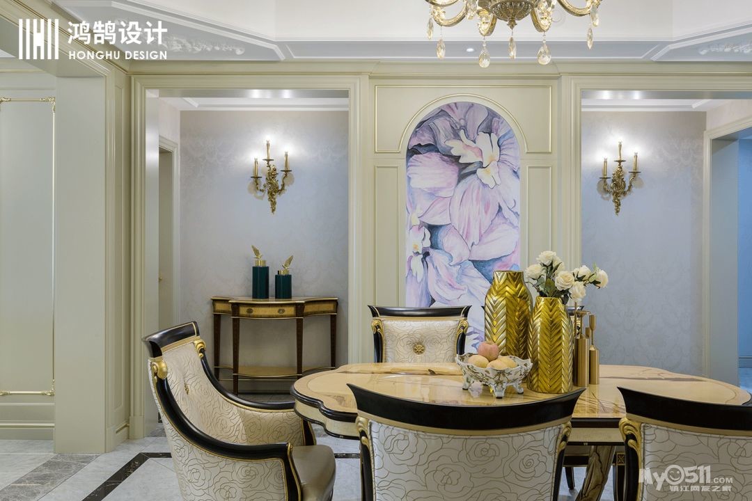 大气的护墙板,颜色既淡雅也大气,金色镶边,让整个法式氛围延展开来。