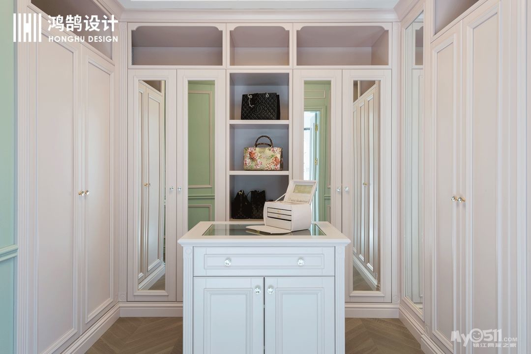 为了弥补业主对于粉色的热爱,在这个私人空间中,设计师选择了浅粉色衣柜,在这个空间里,女业主可以恣意享受属于自己的那份精致时光。