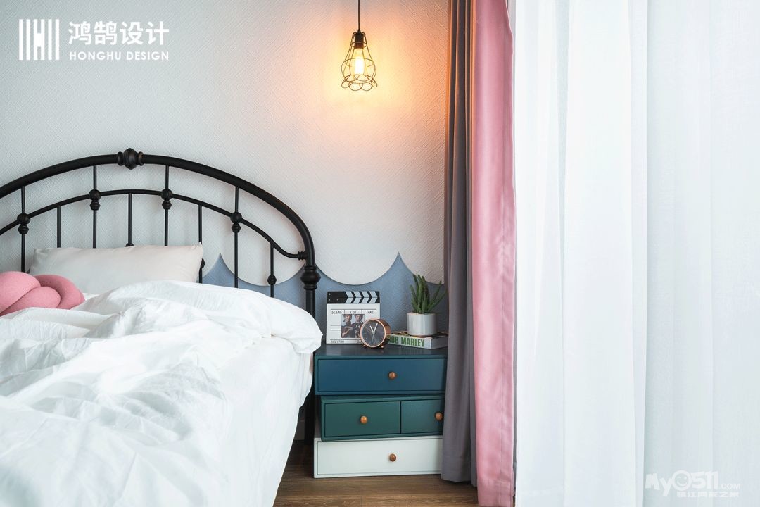 铁艺的床,既简单又富有艺术感,整个儿童房让人充满想象。