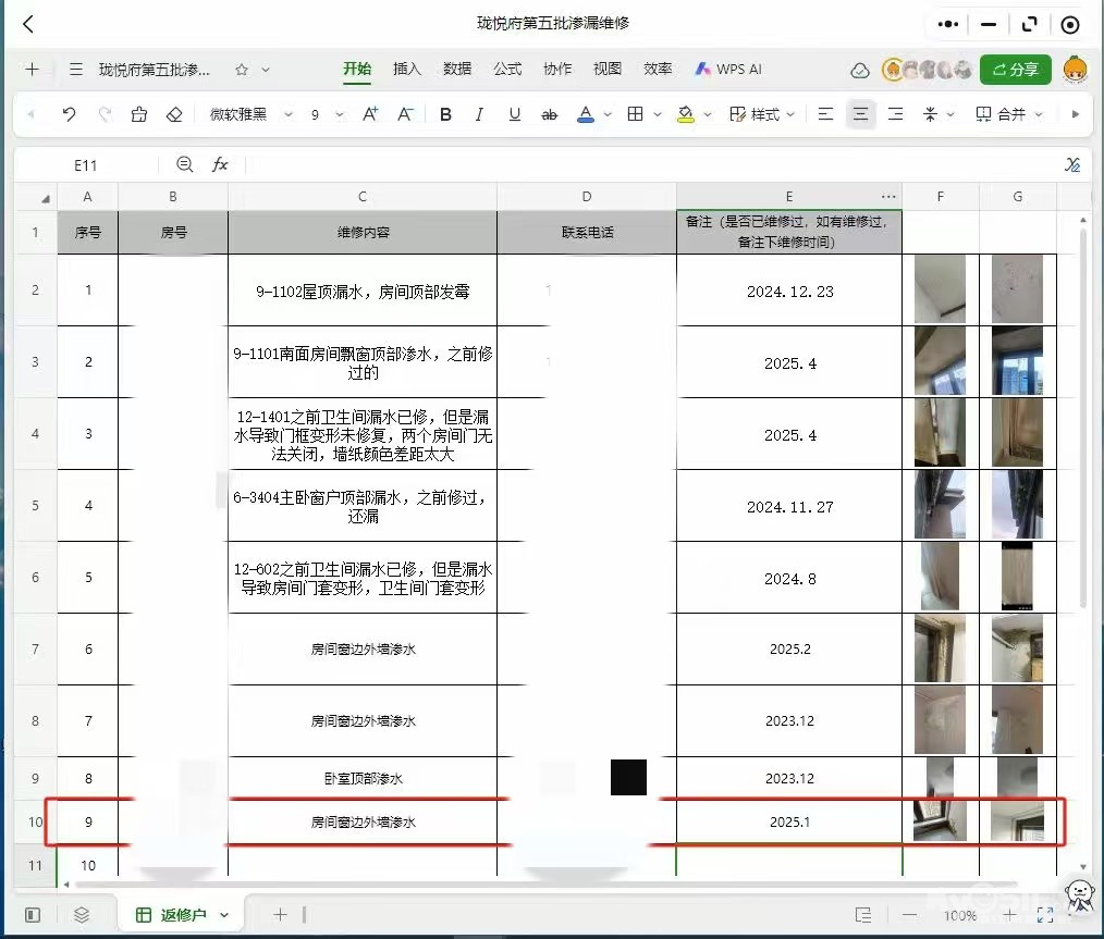 珑悦苑房修渗水等问题长期推脱无人处理