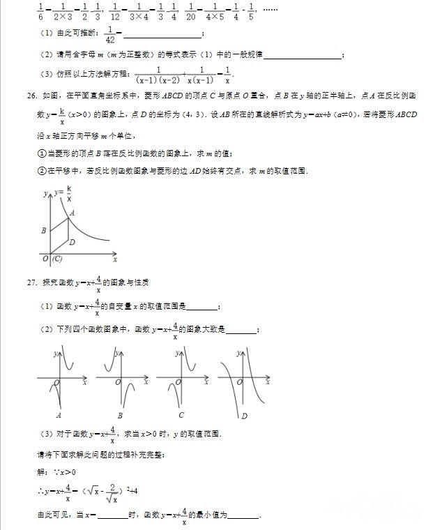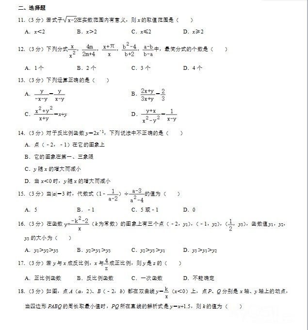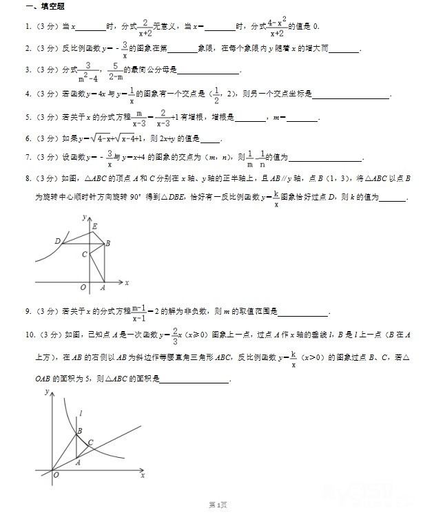 分式 反比例函数 是第二次月考重点