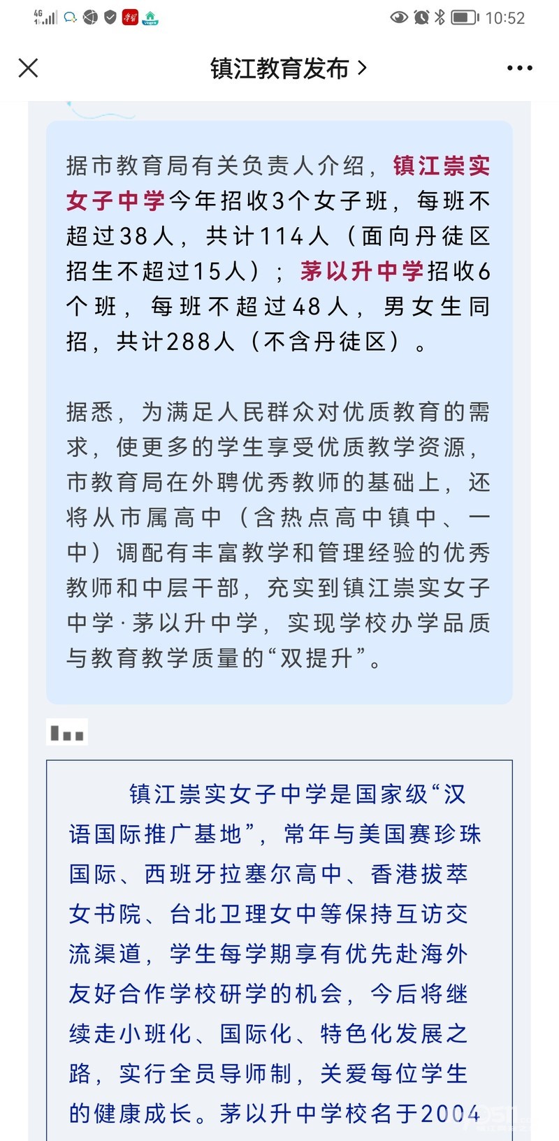已知,枫叶国际已经增加一个班。推测,心湖高中可能会增加招生人数。