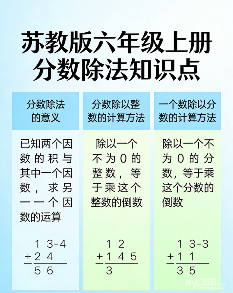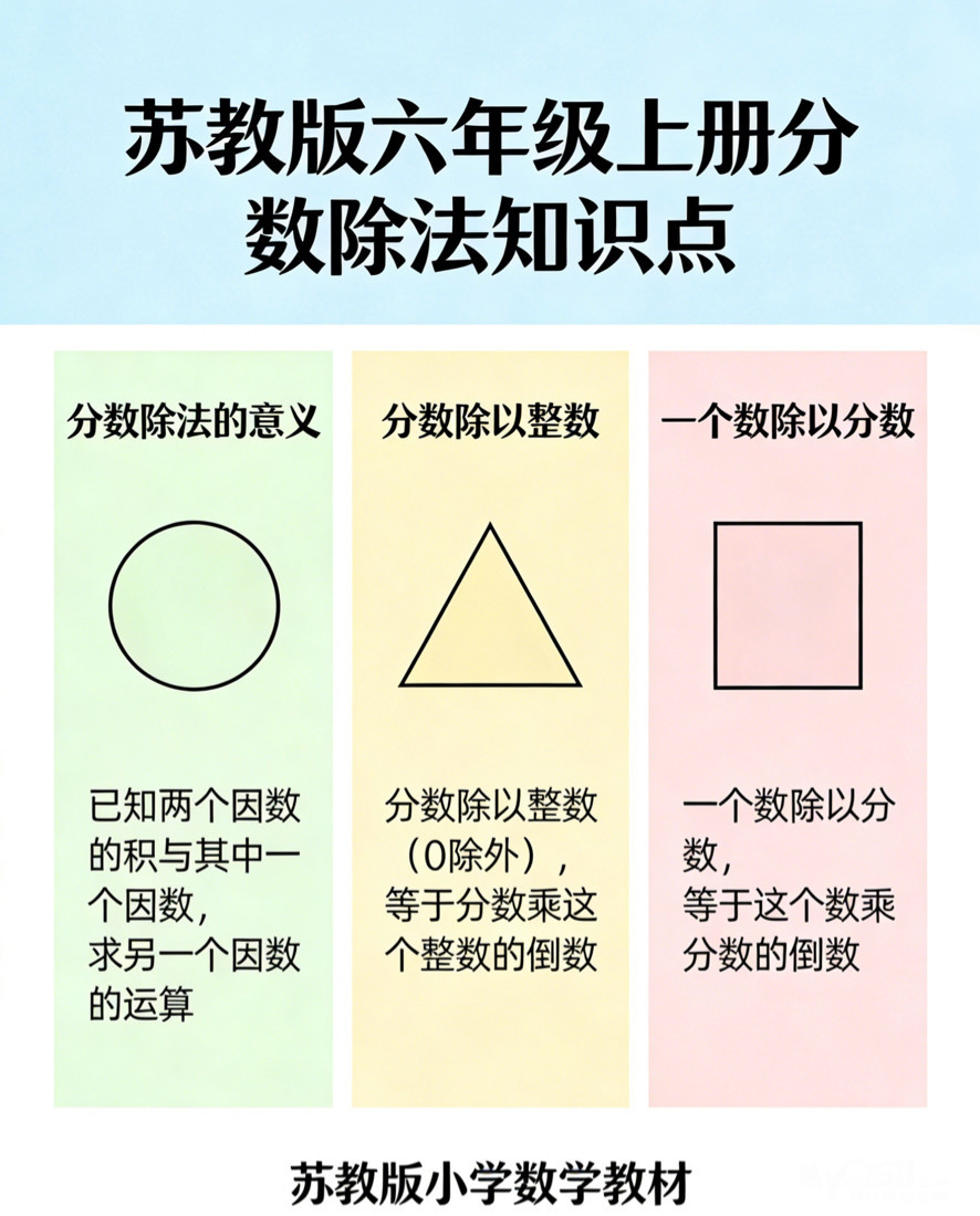 万能核心一句:除以一个不为 0 的数,等于乘它的倒数。带分数先化假分数,除法先变乘法,再约分计算。应用题更简单:单位 “1” 已知用乘法,未知用除法