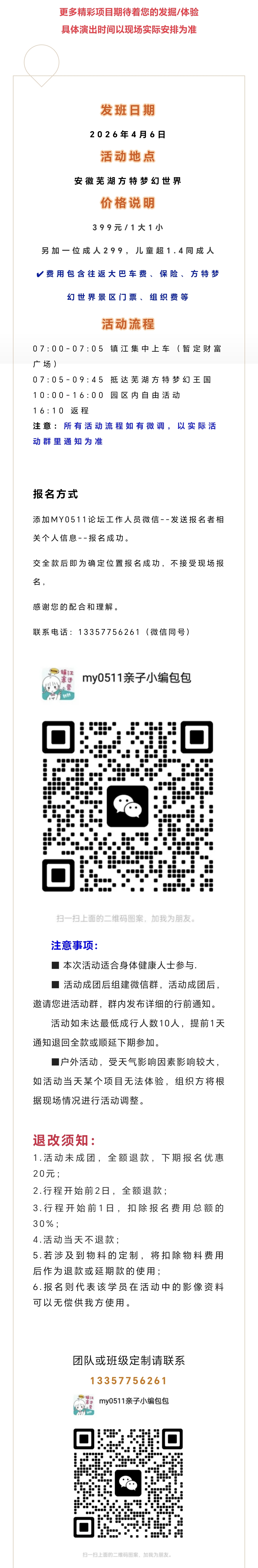> 4.6亲子游(已成团 余5组名额):一起出发芜湖方特梦幻王国!熊大熊二我们来啦!