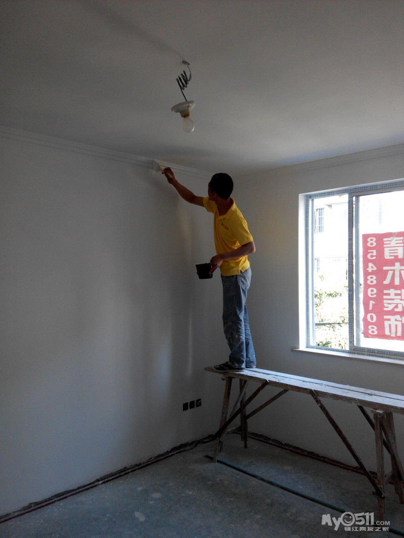 昨天下雨窗户关上阴干,今天晴天风大把窗户打开吹。晚上看了下第一遍腻子已经干了。