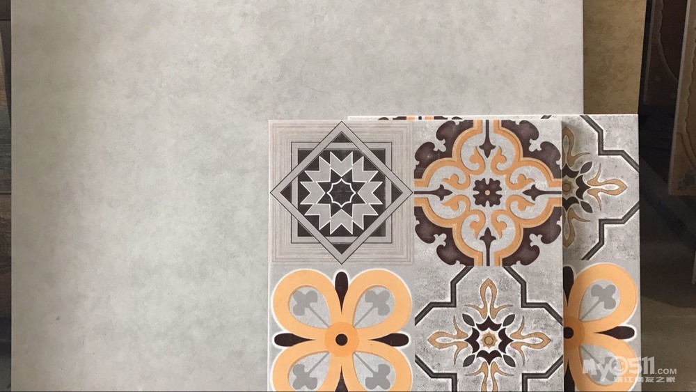 过几天应该就是瓦工进厂了,挑了些地砖上墙,全瓷的哑光仿古砖灰色的是用来厨房和卫生间的,用点小花砖点缀,