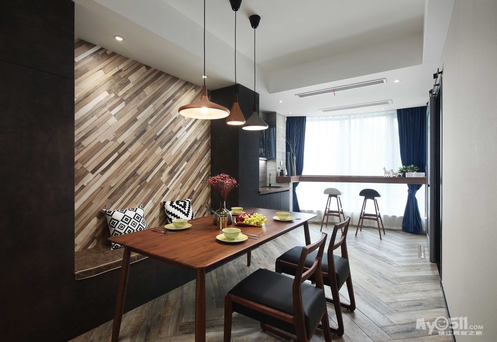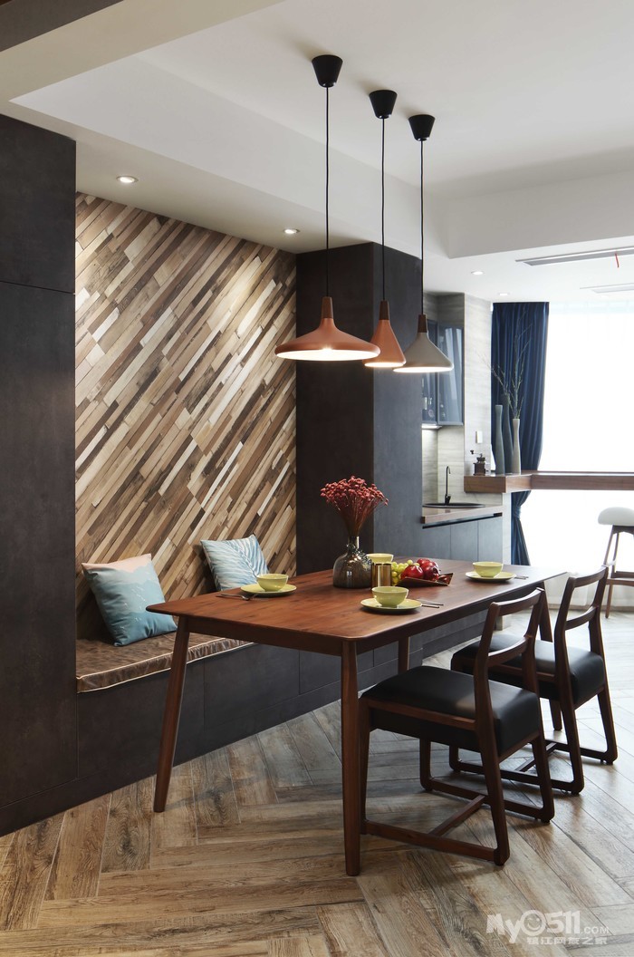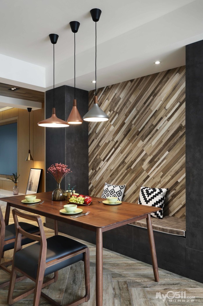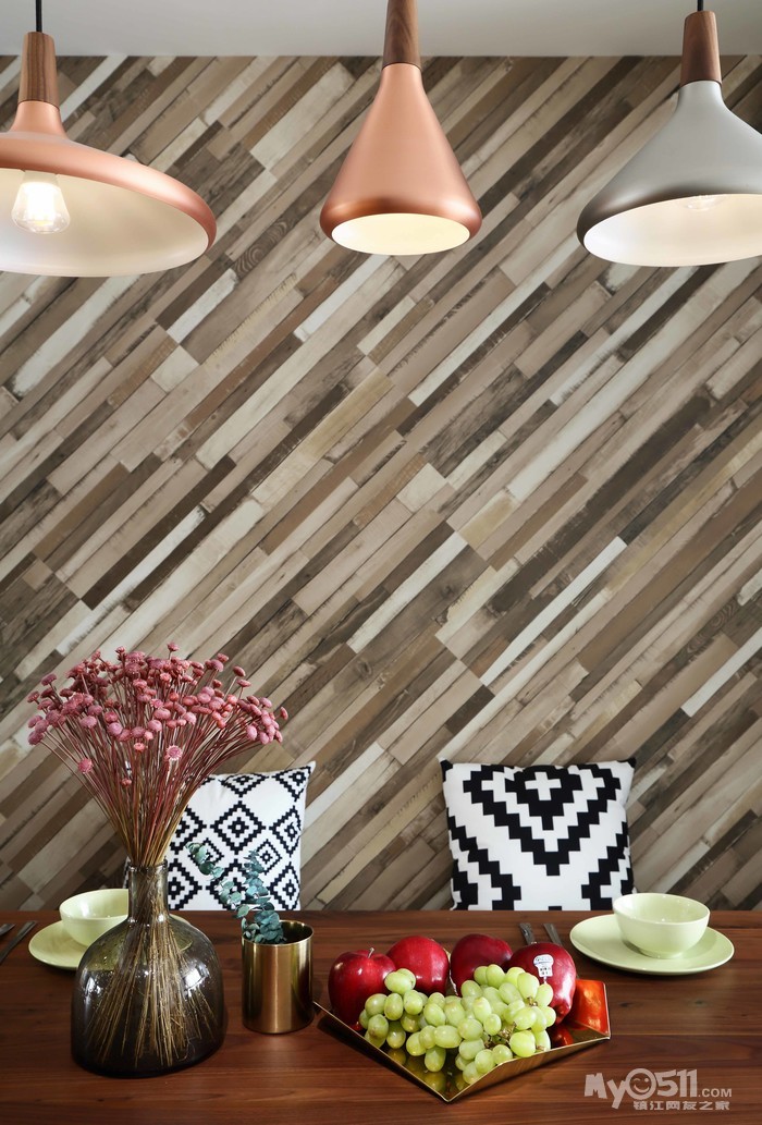 餐厅背景墙,地板上墙,看着眼熟,一问果然是欧王的!很出彩