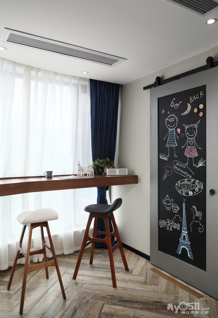 餐厅的移门也是黑板漆,上面的画设计师不许说是她画的