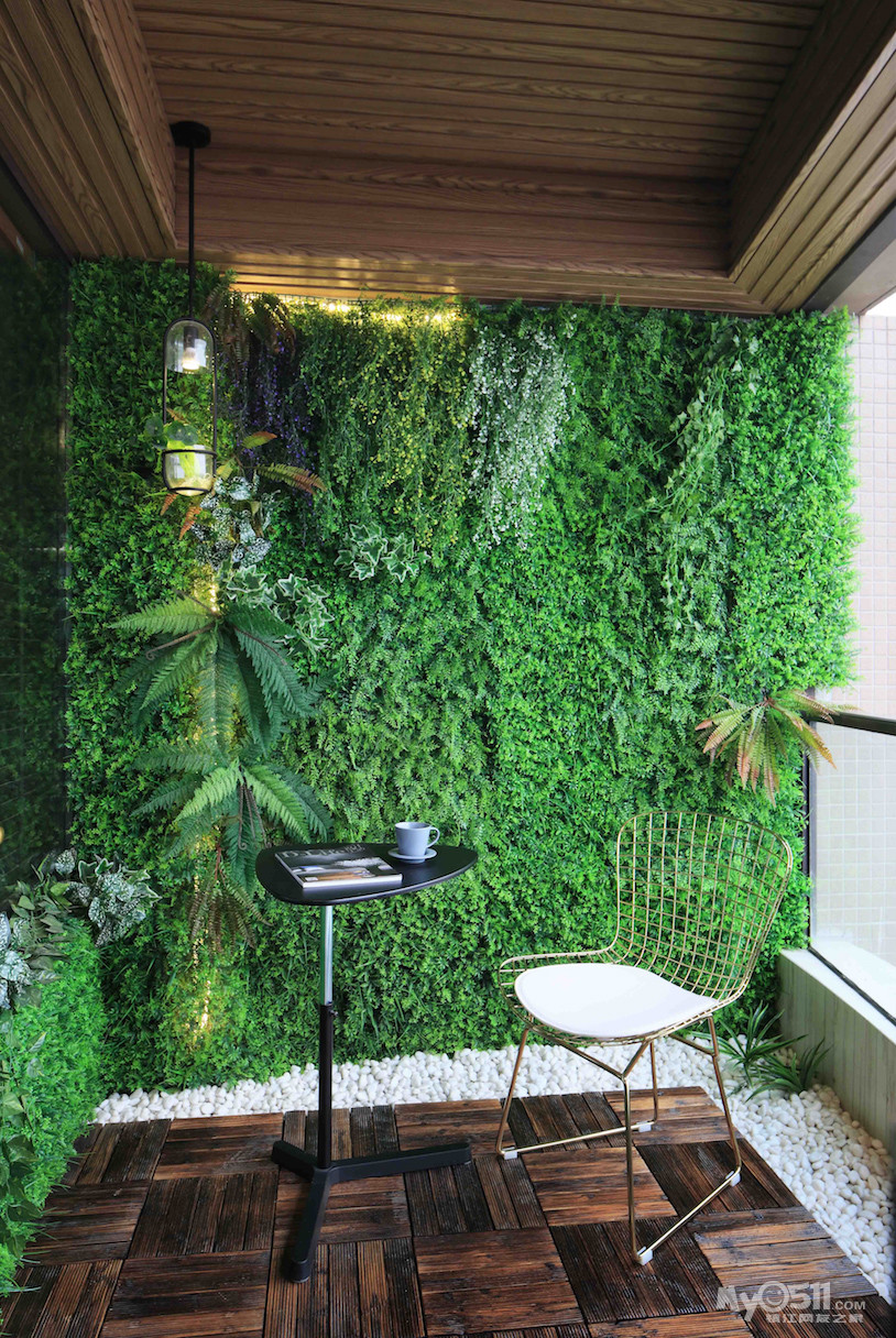 最后上一张露台照,起初这面墙的背后是中央空调外机位,比较丑,然后我们商量着各种办法遮丑,跑了趟宜家,想买花架,结果发现鹅软石就做不了,最后让他直接假绿植。不得不佩服男主的动手能力。一个人妥妥的安装好了,多余的灯带还给加了进去。这个露台其实是客厅阳台的一半隔出来的,另外一半正常就是室内洗衣晒衣的地方,这个露天的 超级有感觉,在这边陪业主抽了根烟,看看楼王的景色,感觉棒棒哒
