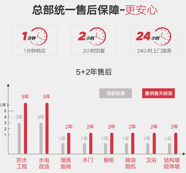 塞纳春天“699元/㎡全包装修”承诺45天标准工期内完工,所有流程都标准化,让业主一目了然。