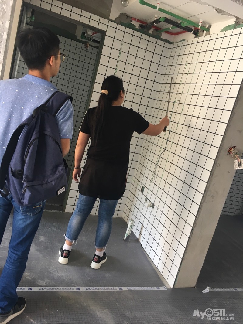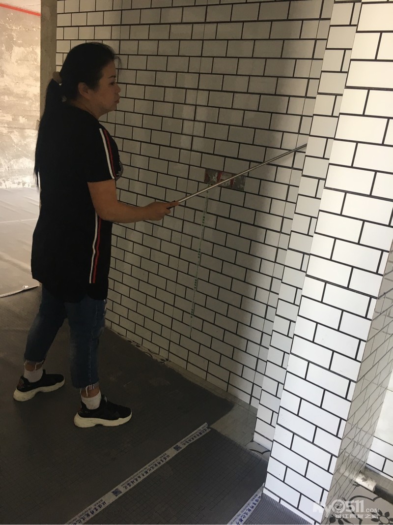 不像小砖还需要留1.5公分缝,这个直接紧密贴就好了。快粘粉还没买,刷完第一遍腻子之后贴就可以了。