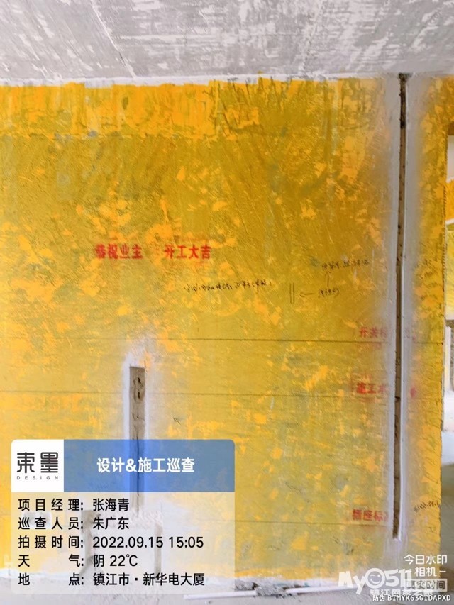 确认拿房时间第一时间通知了朱总,拿房当天朱总安排项目经理帮我们验房,墙面上有好多空鼓,墙面项目经理都用记号笔圈出来了,这个朱总说找物业安排维修就可以了,下水也帮我们试了一下,通的,看看窗户边有没有漏水,窗户密封性怎么样的,还有拿红外线看看墙垂直误差怎么样,发现就空鼓问题,其它还好,然后朱总帮我们挑了一个好日子等待开工!开工现场展示下:还有当天做了门和电梯间的保护以及地面刷绿色的,说是起到固化作用!