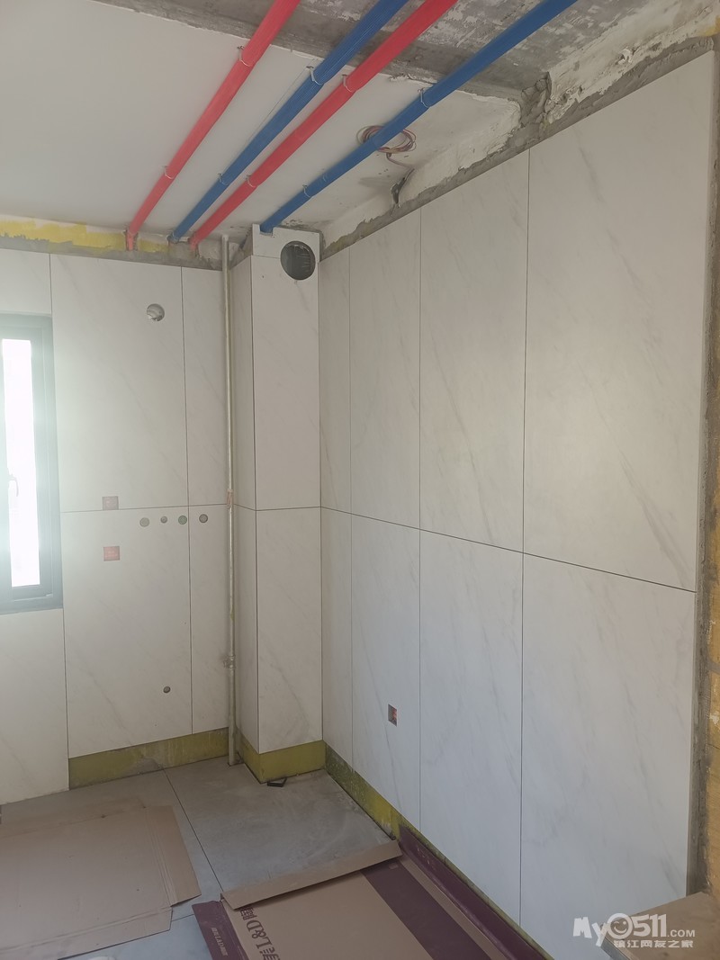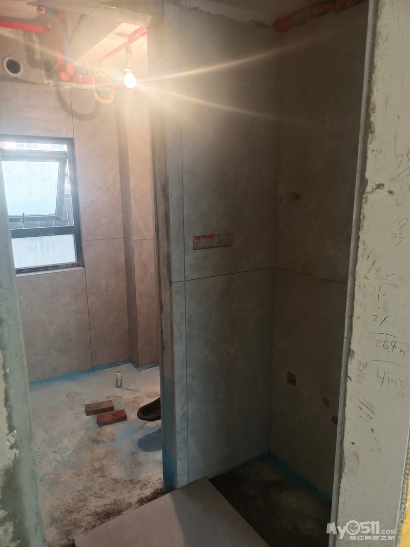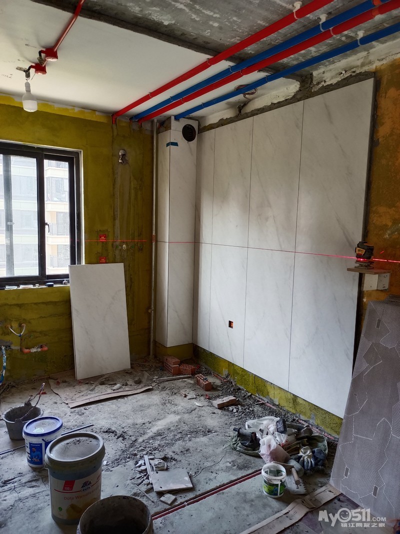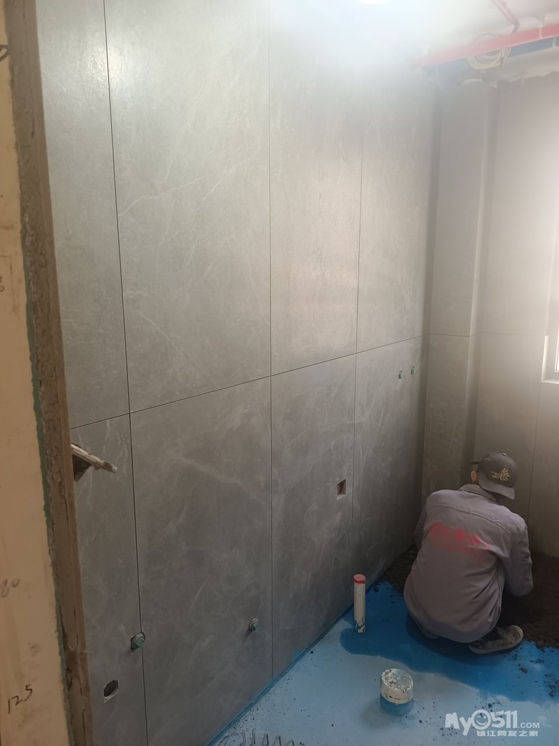 瓦工进场了,卫生间用的目前市面上最好的家填宝回填的,防水性相当不错!