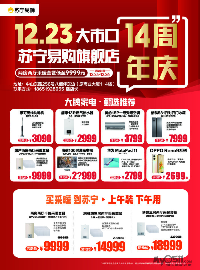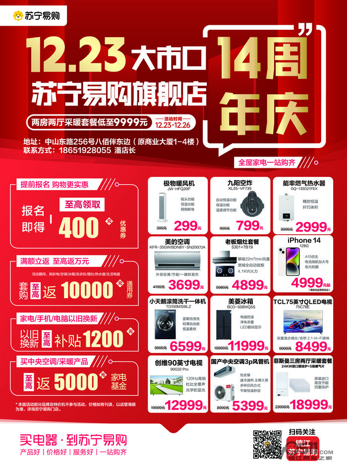 12月23日-12月26日,苏宁易购大市口旗舰店14周年店庆回馈!