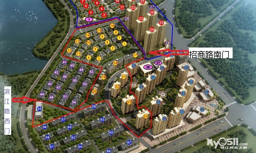 因本小区道路不宽,停车位有限,烦请各位将车辆停在北固湾广场停车场或招商路两侧、北固湾大统华停车场(均为免费停车),然后从北固湾二区西门或南门进入,到我家均为5分钟路程,既可以避免停车烦恼,也可以顺便在滨江路、招商商业街休闲。
