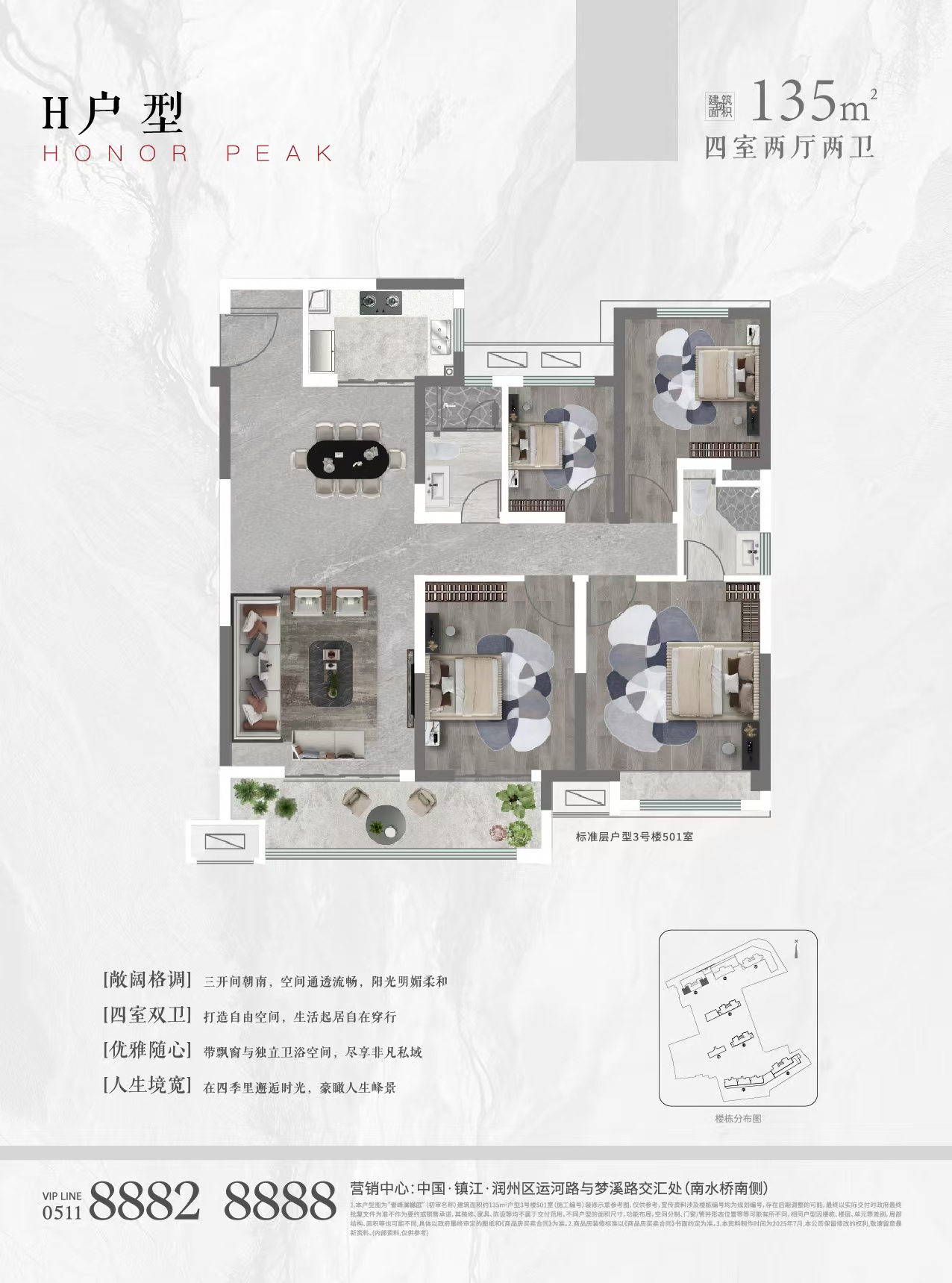 V如意江南皇华庭(120平三房)豪装/全明边户楼层好
