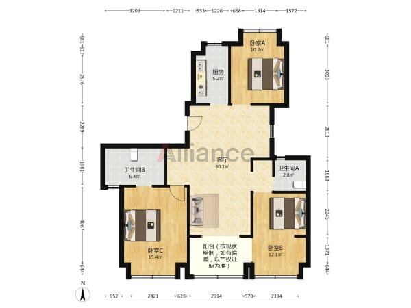 AA尚书房尚书房 楼王 132平毛坯 前无遮挡光线好