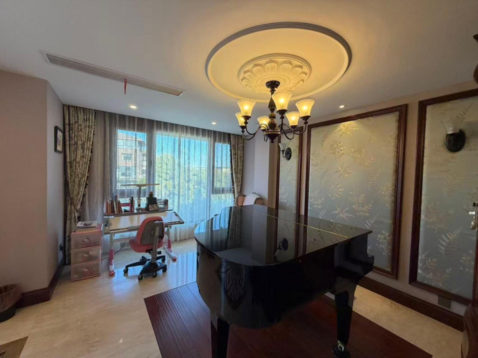 此房有电梯 地下室就在地面上 双层花园 南北入户 环绕型花园 厨卫用的都是石材 东西全留(除钢琴)品