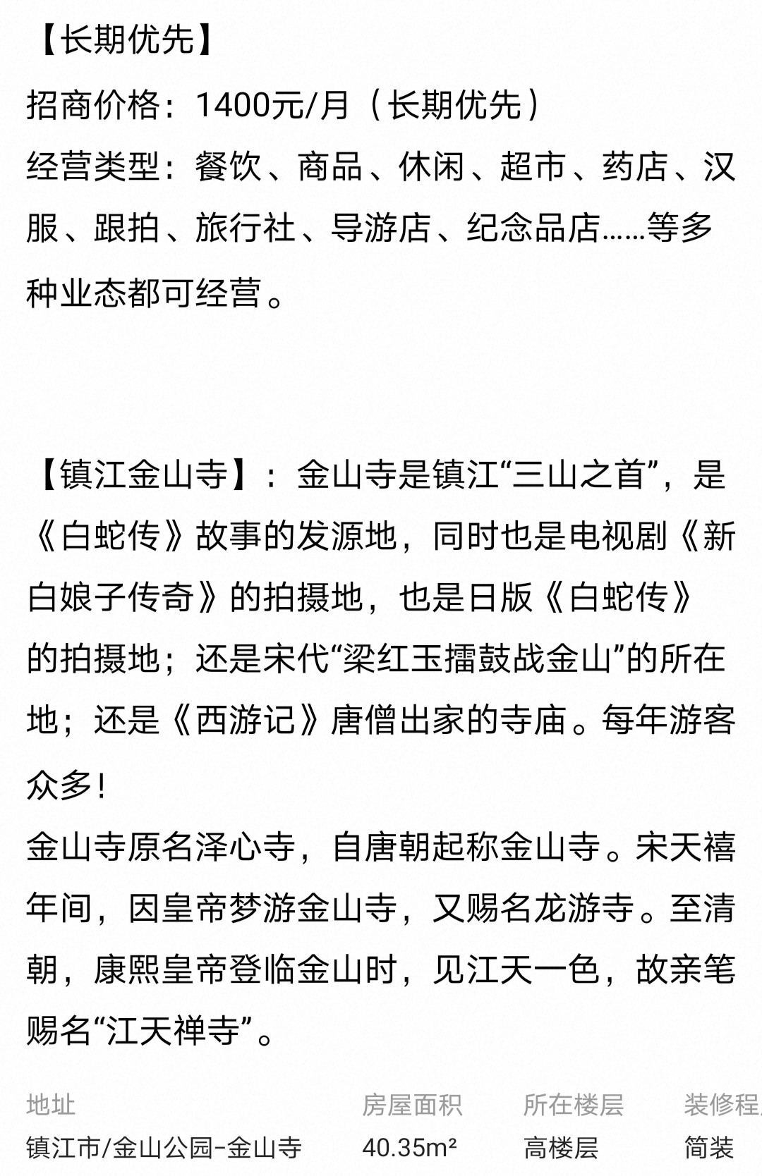 b一一金山门面房一一d旺铺招租,金山寺门口百米,可商住一体
