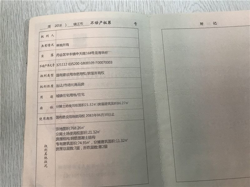 [二手房] 丹徒新区 辛丰镇 龙湾华府 商品房 1搂 86平米 新装设全 二室二厅