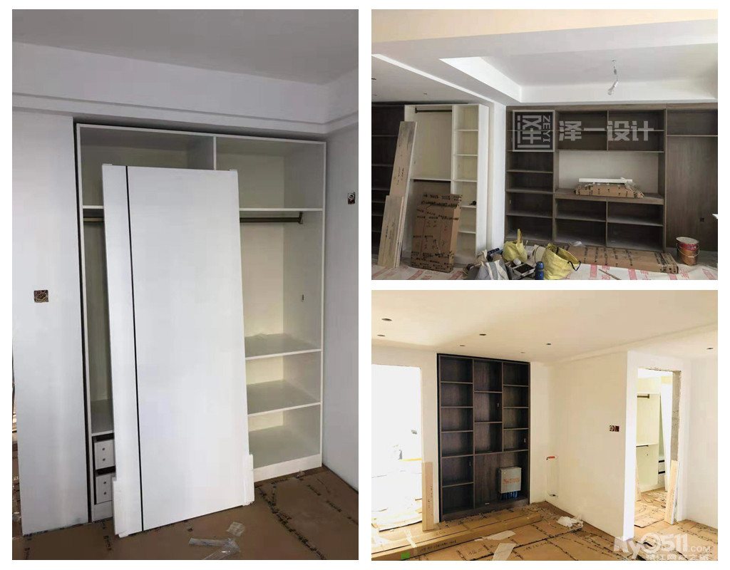 ②定制柜体:木工施工中后期,初量尺寸, 地楞完成或暖气找平结束复尺;