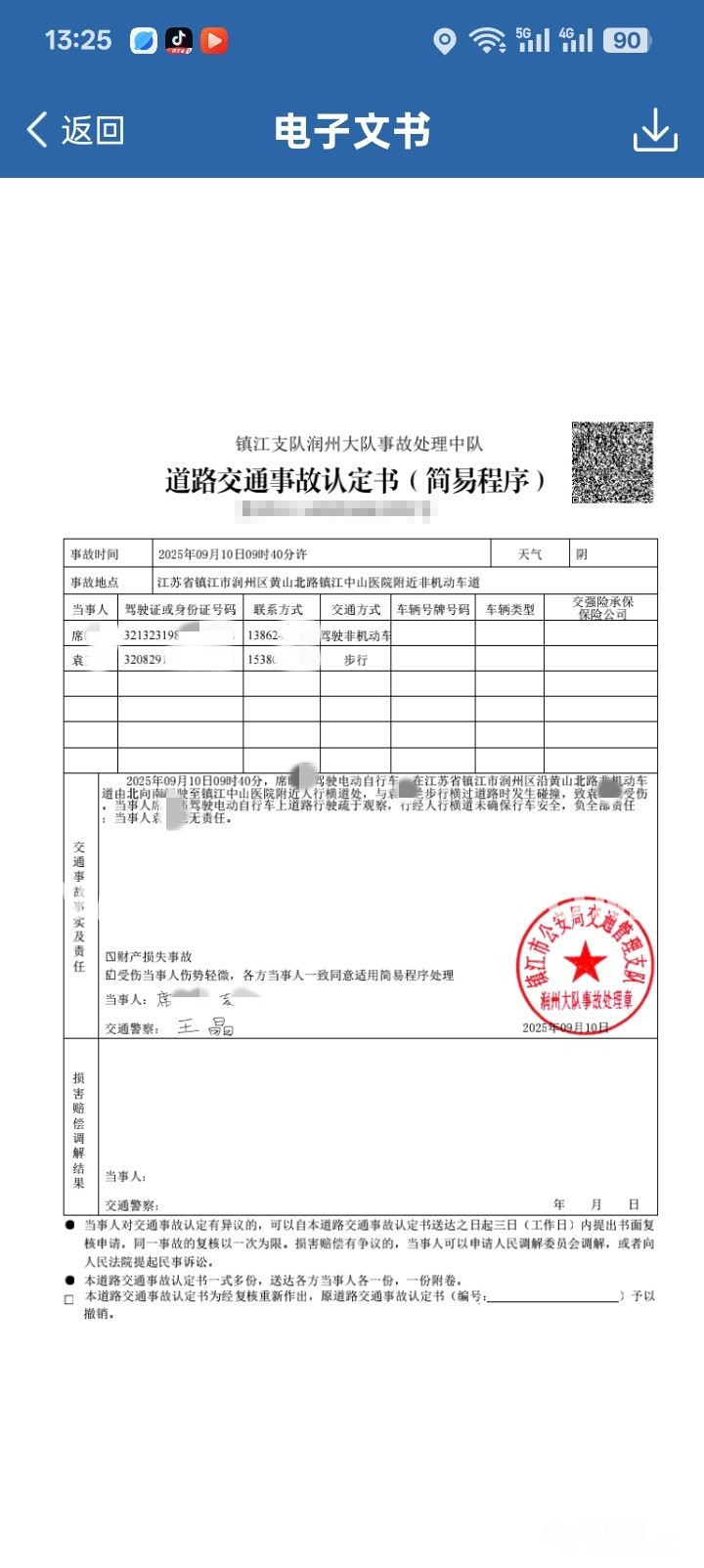 去年(2025年9月)我在上班途中被外卖车撞倒,当场送医后诊断为: