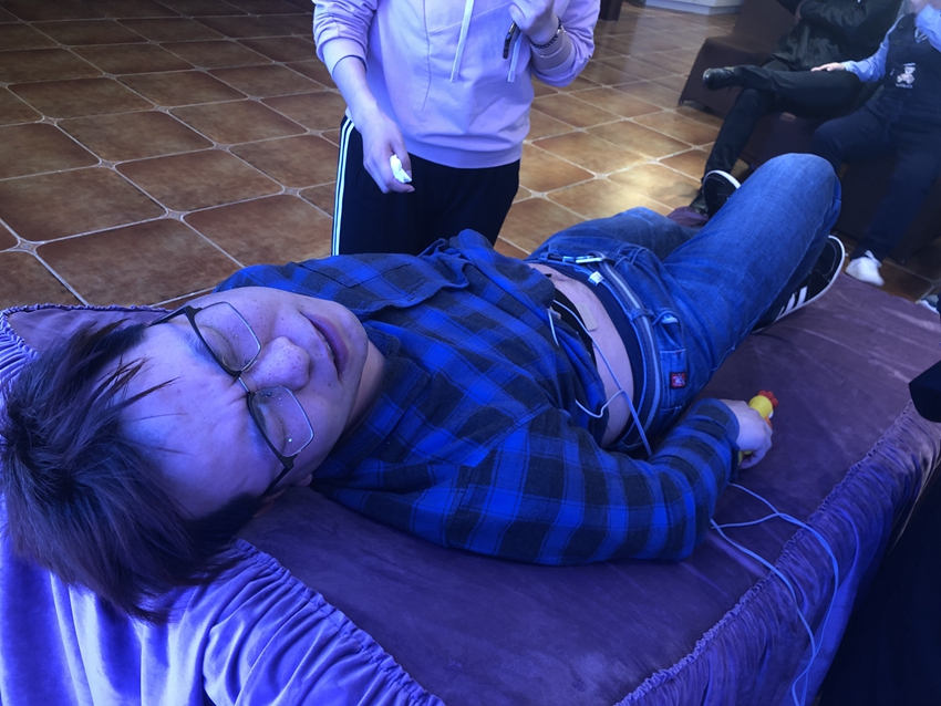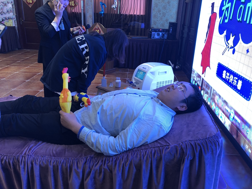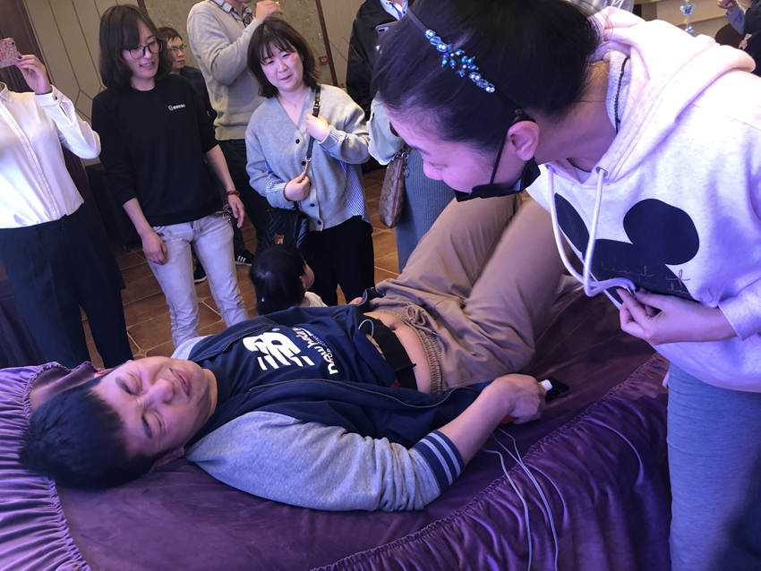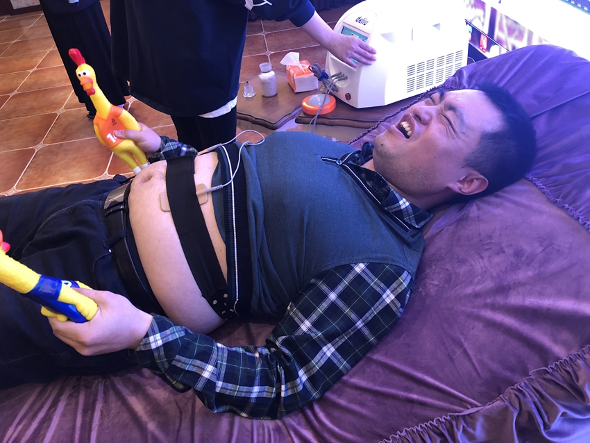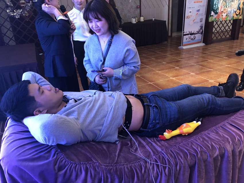 一位二胎妈妈特意带老公来试试,因为她第一胎痛了30多个小时。