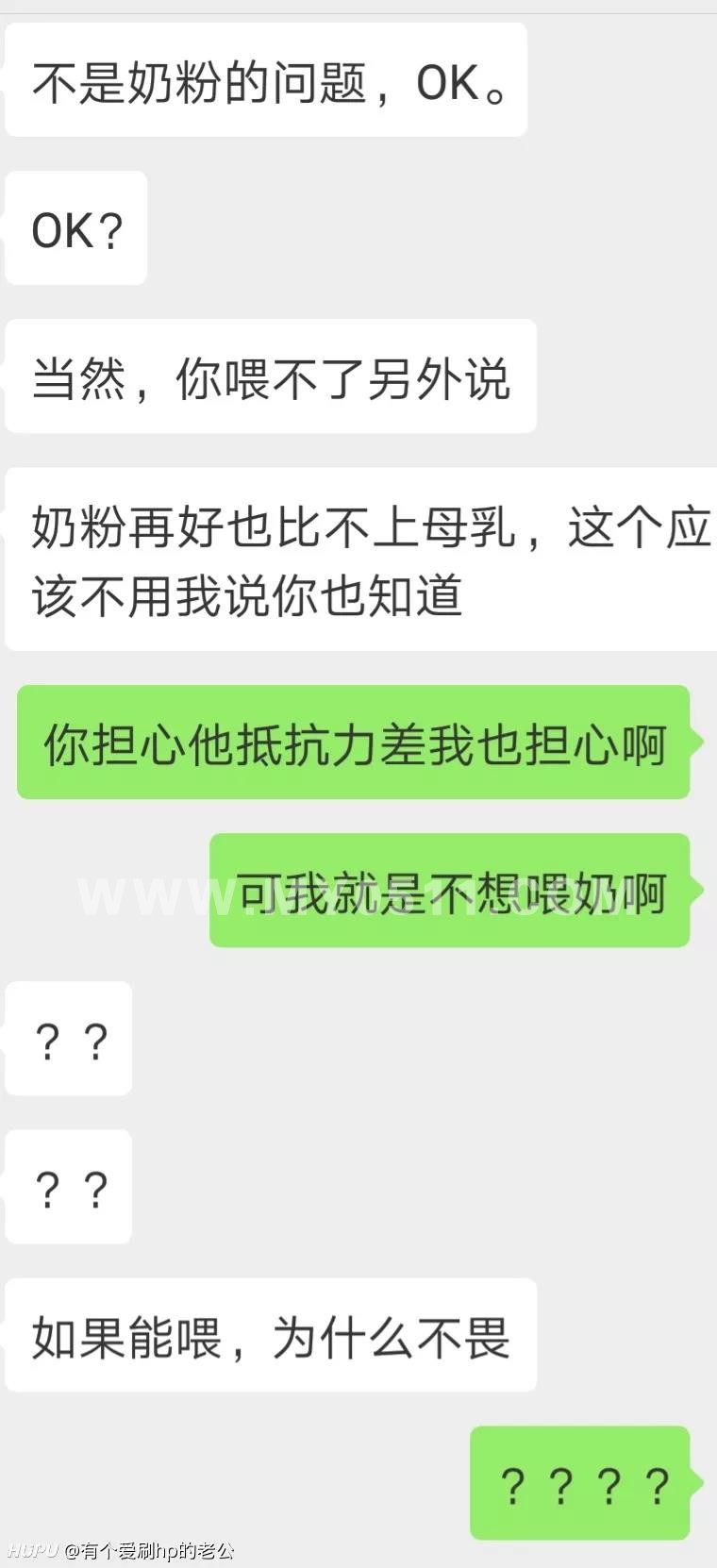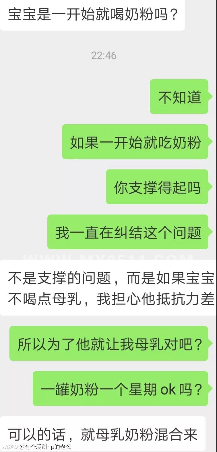 我一开始是想着老公不知道他是否能够支撑得起纯奶粉喂养,因为对于我这种动不动就不舒服的身体,我认为我做不到起夜喂奶,我想要得到很好的休息,但一想到老公辛苦工作各种,就于心不忍,可是看到他说来说去就觉得很烦,凭什么用这种口吻来要求我,辛苦的又不是他,半夜起来的也不是他,涨奶的也不是他,说起来怎么这么简单呢?